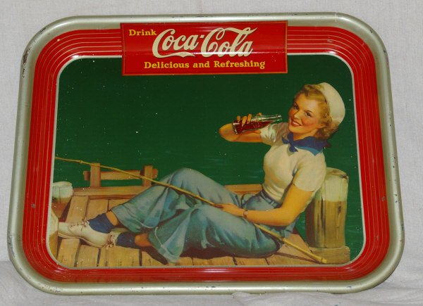 16: 1940s Coca Cola Advertising Tray Of Lady Fishing.