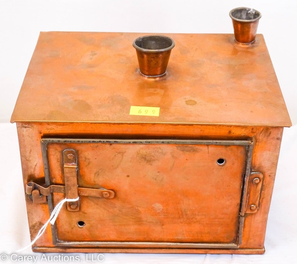(4) COPPER & BRASS KITCHENWARE, LADLES, PITCHER & BRAZIER6 days LeftGeorgian Copper & Brass Samovar circa 1810Copper and Brass Kettle, c.1930Custom Built Copper Boiler Still / Condenser System w/ Coiled Copper Tubing, Lid and SpoutMar 02, 2026Japanese Meiji Copper Sake Warmer (Kan-d?ko) with Dual Lids and Handle4 days LeftCopper wine warmer with charcoal stoveFeb 21, 2026A Large Copper Over Metal VesselFeb 22, 2026Early Copper KettleFeb 22, 2026Antique Copper Boiler Water Tank, w/ handles, and welded top, pipe on top, 20h x 15w x 15d inchesLate Victorian Hand-Hammered Copper Cauldron Pot6 days LeftVintage Copper Lidded Tankard, Marked3 days LeftPure copper wine potFeb 21, 2026A Qing Dynasty (Qianlong period) copper antique copper square cauldron aroma burnerMar 14, 2026Antique, hand-hammered copper chapati box, traditionally used in Indian7 days LeftA Copper TeapotFeb 22, 2026Copper Fondue Pot with Candle Warmer5 days Left