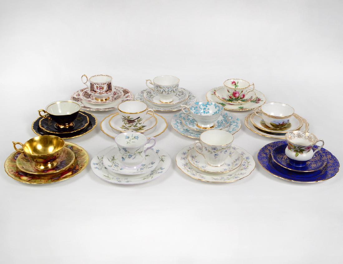 ASSORTED ENGLISH & GERMAN TEACUPS, SAUCERS & PLATES