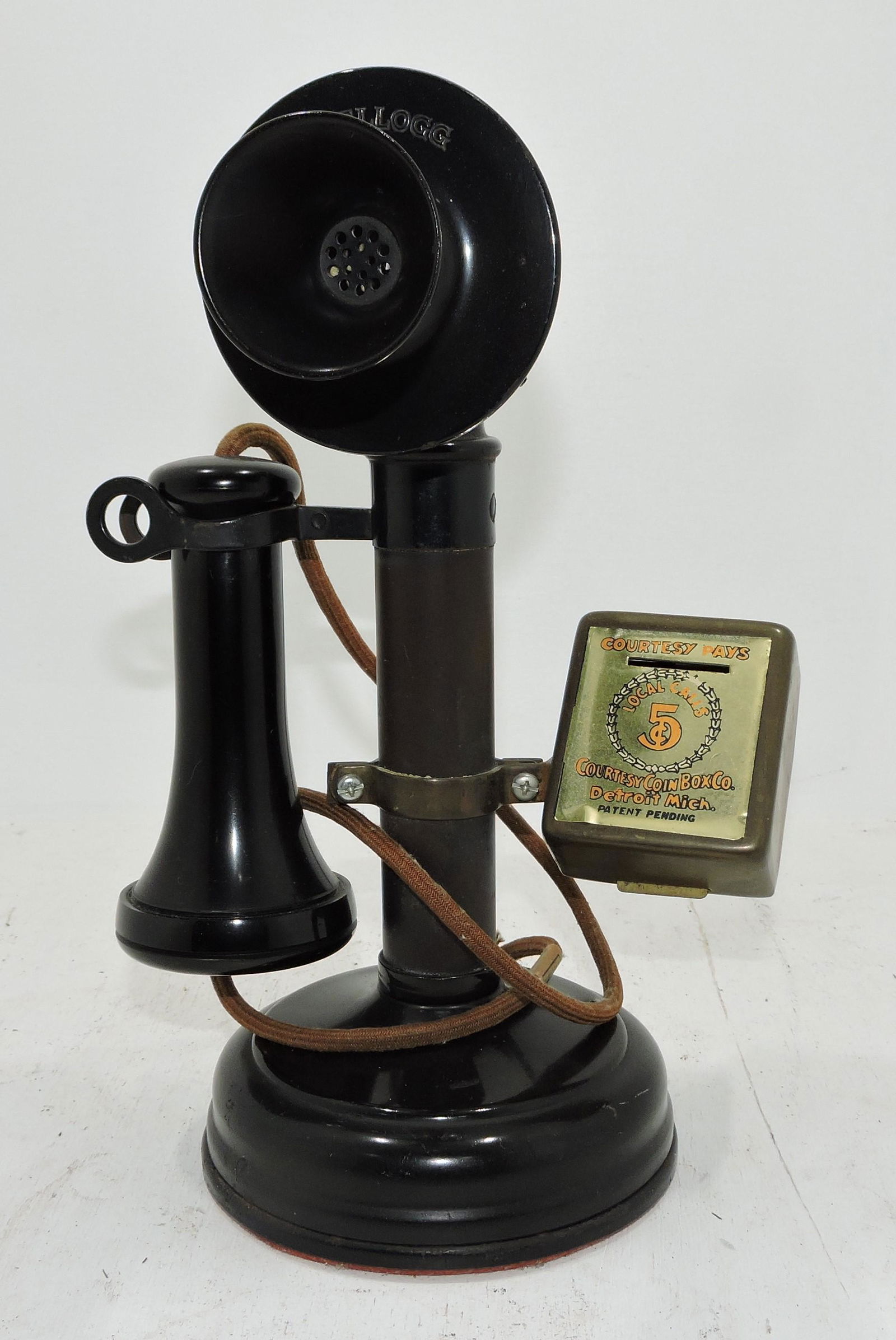 WESTERN ELECTRIC / KELLOGG S & S CO. VINTAGE BRASS CANDLESTICK DESK / TABLE TELEPHONES, LOT OF THREE4 days Left1913 Western Electric Candlestick Telephone & BoxMar 14, 2026Ca. 1914-1915 Danish JYDSK Antique Desk PhoneMar 14, 2026Antique Art Deco Western Electric TelephoneMar 14, 2026Stromberg-Carlson Tel. MFG. Co. Tabletop Candlestick Rotary Telephone1 day LeftSWEDISH AMERICAN TELEPHONE CO. CANDLESTICK TELEPHONE Chicago, Late 19th/Early 20th Century HeightMar 12, 2026The American Bell Telephone Co. Desk Top Candlestick Telephone w/ a 434A Subset Ringer Box1 day LeftKellogg Vintage Black Dial Desk PhoneSTERLING ELECTRIC CO. CANDLESTICK TELEPHONE Lafayette, Indiana, Early 20th Century Height 13". BaseMar 12, 2026Vintage Kellogg Switchboard Supply Co Rotary Phone, 7h x 9w x 6d inchesWESTERN ELECTRIC FOR AMERICAN BELL (W.E. BELL) #10 CANDLESTICK TELEPHONE Early 20th Century HeightMar 12, 2026Western Electric Brass Desk Top Candle Stick Rotary Telephone1 day LeftWestern Electric Candlestick Telephone 3296 days LeftEarly pay telephone from Chicago HotelMar 28, 2026US WWII USN Kellogg Switchboard Supply CO 5812-MX Wall PhoneGerman work (20th century) Telephone3 days Left
