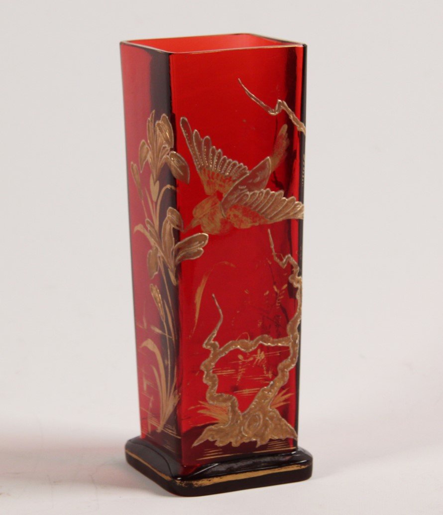 GOLD GILT CRANBERRY MOSIER GLASS VASE