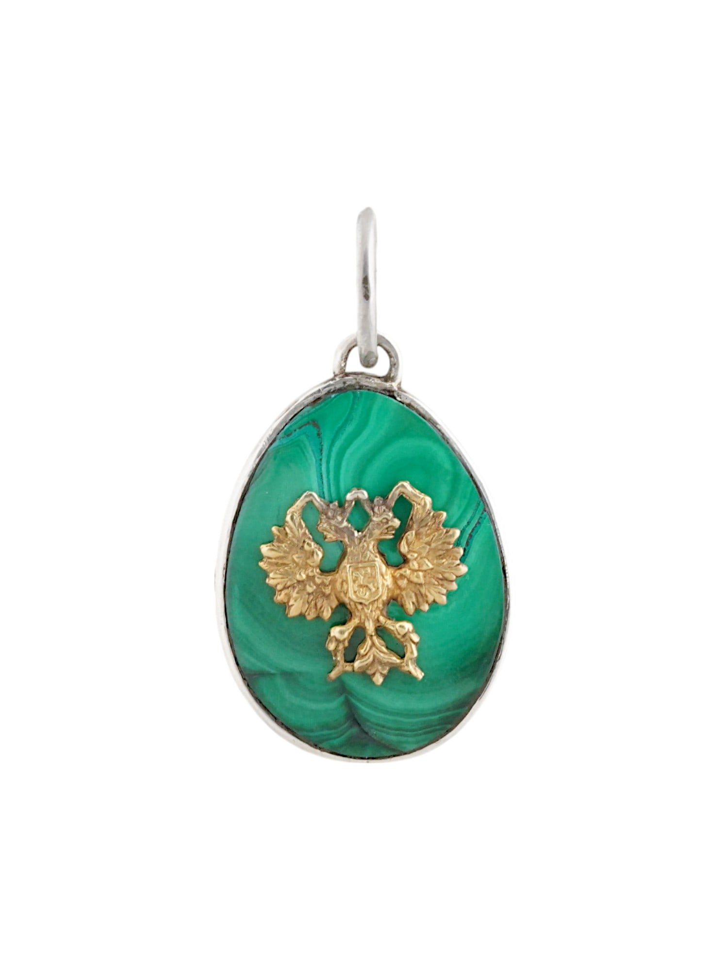 RUSSIAN SILVER MALACHITE EAGLE EASTER EGG PENDANT