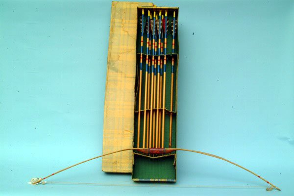 ![A Child's Bow and Arrow: Mid-20th century, the bent wood arrow with velum or parchment grip, the arrow with wood shaft and fitted with an arrowhead. [44 1/2" L and 36" L]. Each with some wear and minor losses.](https://p1.liveauctioneers.com/1221/92110/47623701_1_x.jpg?height=280&quality=70&sharpen=true&version=1471352384&width=280)