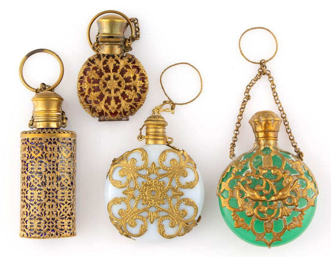 ![Art Glass Perfume Bottle [Shell Shape]: Measures 5.5 in. x 2.25 in. x 2.25 in. No evident cracks, chips or repairs. Measures 5.5 x 2.25 x 2.25 in. for shipping purposes only. The absence of a condition report does not imply that the lot is](https://p1.liveauctioneers.com/5755/406957/226103724_1_x.jpg?height=310&quality=70&version=1770940375)