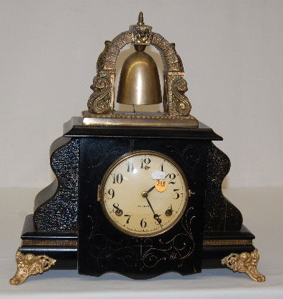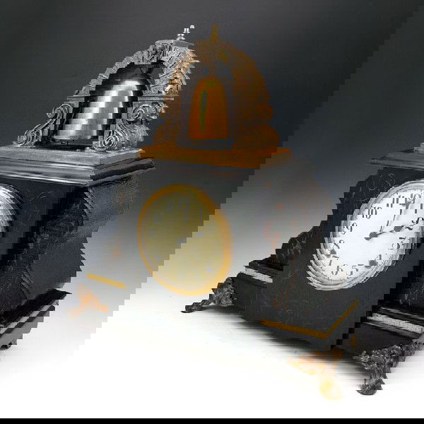 ![[CLOCKS] Gilbert, Clarke & Co. Mantel Clock: Clarke, Gilbert & Co. Mantel Clock Brass, wood, hand-painted ca. 1840s 15 3/16 x 25 3/4 x 4 in., clock face 7 3/4 x 7 3/4 in., lower door 7 3/4 x 9 3/4 in. Likely a 30-hour](https://p1.liveauctioneers.com/7226/405784/225354106_1_x.jpg?height=310&quality=70&version=1770229210)