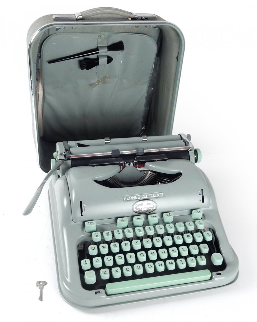 ![Hermes 3000 Vintage Portable Typewriter: Hermes 3000 vintage typewriter with case having Spanish accents. [13" W x 14" x 5 1/2" H]. In good functional condition.](https://p1.liveauctioneers.com/1221/64376/32393970_1_x.jpg?height=280&quality=70&sharpen=true&version=1416674606&width=280)