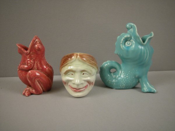 ![[3] Three Assorted Green Majolica Whimsical Frog Vases: [3] Three Assorted Green Majolica Whimsical Frog Vases. size: 2x (7.75 x 5), (4 x 8.25)](https://p1.liveauctioneers.com/3627/248441/128948138_2_x.jpg?height=280&quality=70&sharpen=true&version=1654654388&width=280)
