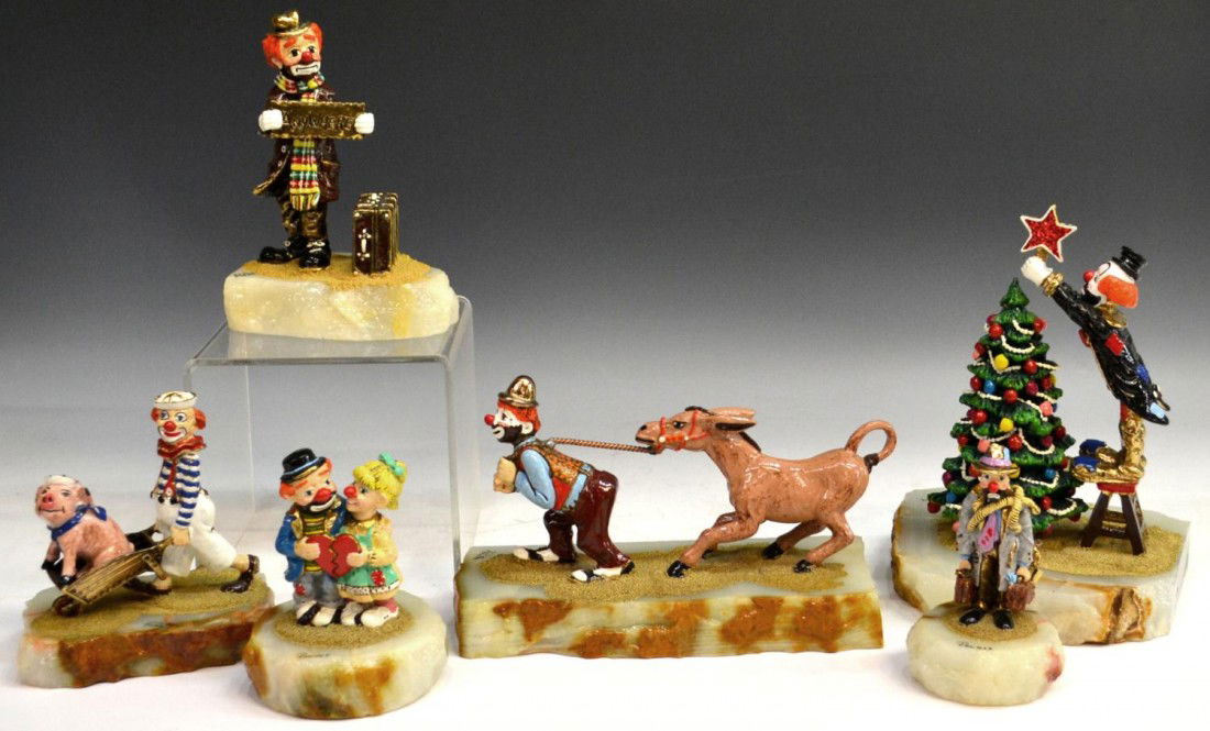![Ron Lee [1947-2017] Signed Collection of 9 Assorted Clown Figurines: Collection of nine assorted clown figurines by American artist Ron Lee (1947–2017), known for his enameled bronze sculptures depicting whimsical circus characters. Each figure is crafted in cast met](https://p1.liveauctioneers.com/3627/393488/219191414_1_x.jpg?height=280&quality=70&sharpen=true&version=1762912498&width=280)