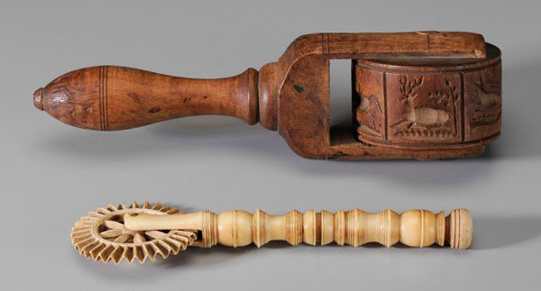 ![Wood and Ivory Tools: 19th century: wheel-type maple pastry imprinter, imprints for sheep, goats, foxes, stags, other animals, American or British, 8-1/4 in., [rim chips, some dents to handle;] ivory crimper with finely tu](https://p1.liveauctioneers.com/33/26233/9799895_1_x.jpg?height=280&quality=70&sharpen=true&version=1315318276&width=280)