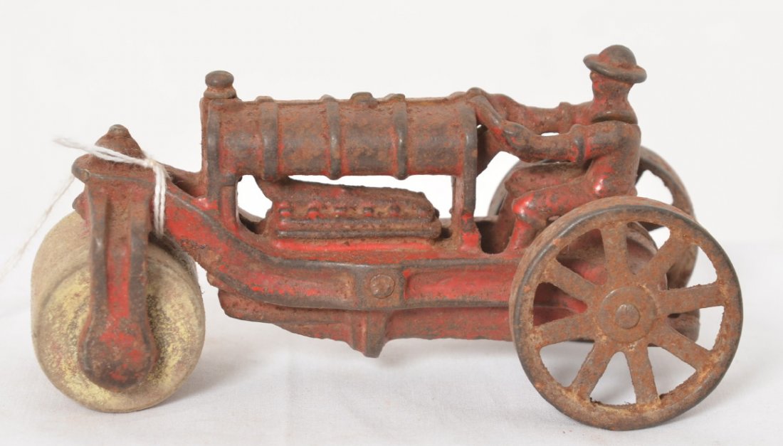 ![Antique American Fold Art Toy Tractor: Painted and carved wood steam toy tractor with movable wheels gears, pistons and levers. Unmarked. [10" H x 7 1/2" W x 15 3/4" L]. Paint loss, soiling and wear throughout consistent with age and use.](https://p1.liveauctioneers.com/1221/199367/100839192_1_x.jpg?height=280&quality=70&sharpen=true&version=1617563722&width=280)