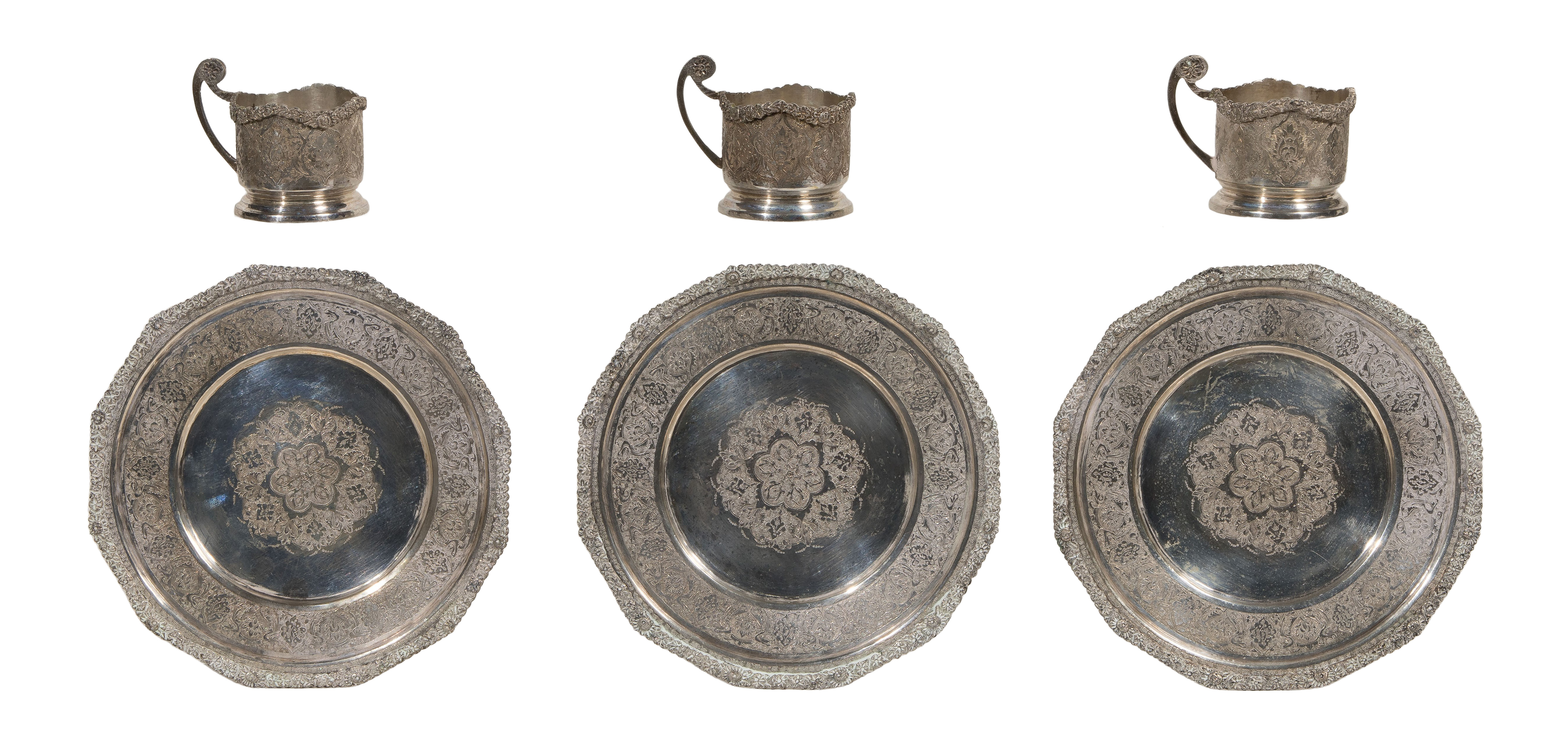 Iranian Silver Cup Holder and Plate Assortment