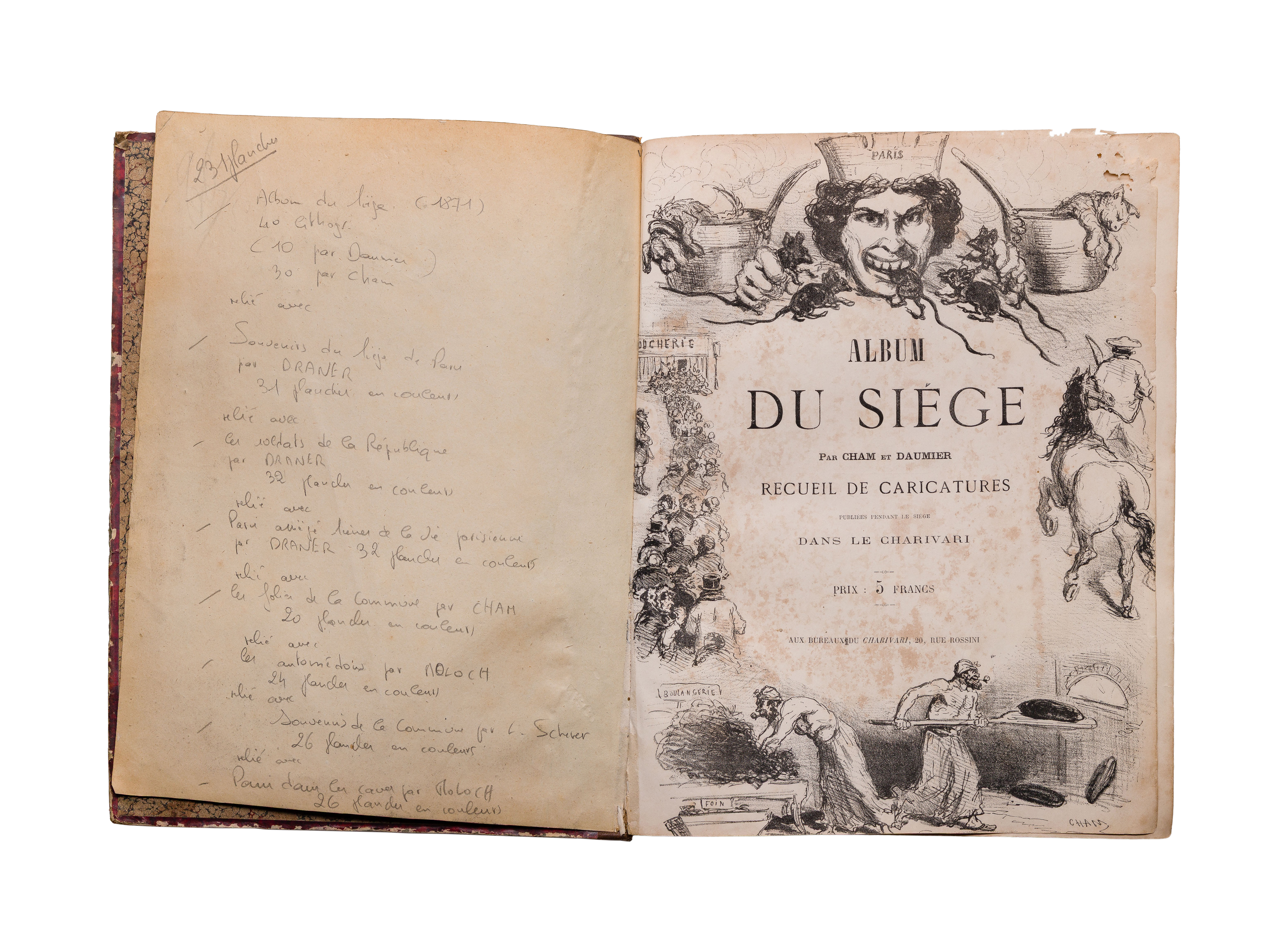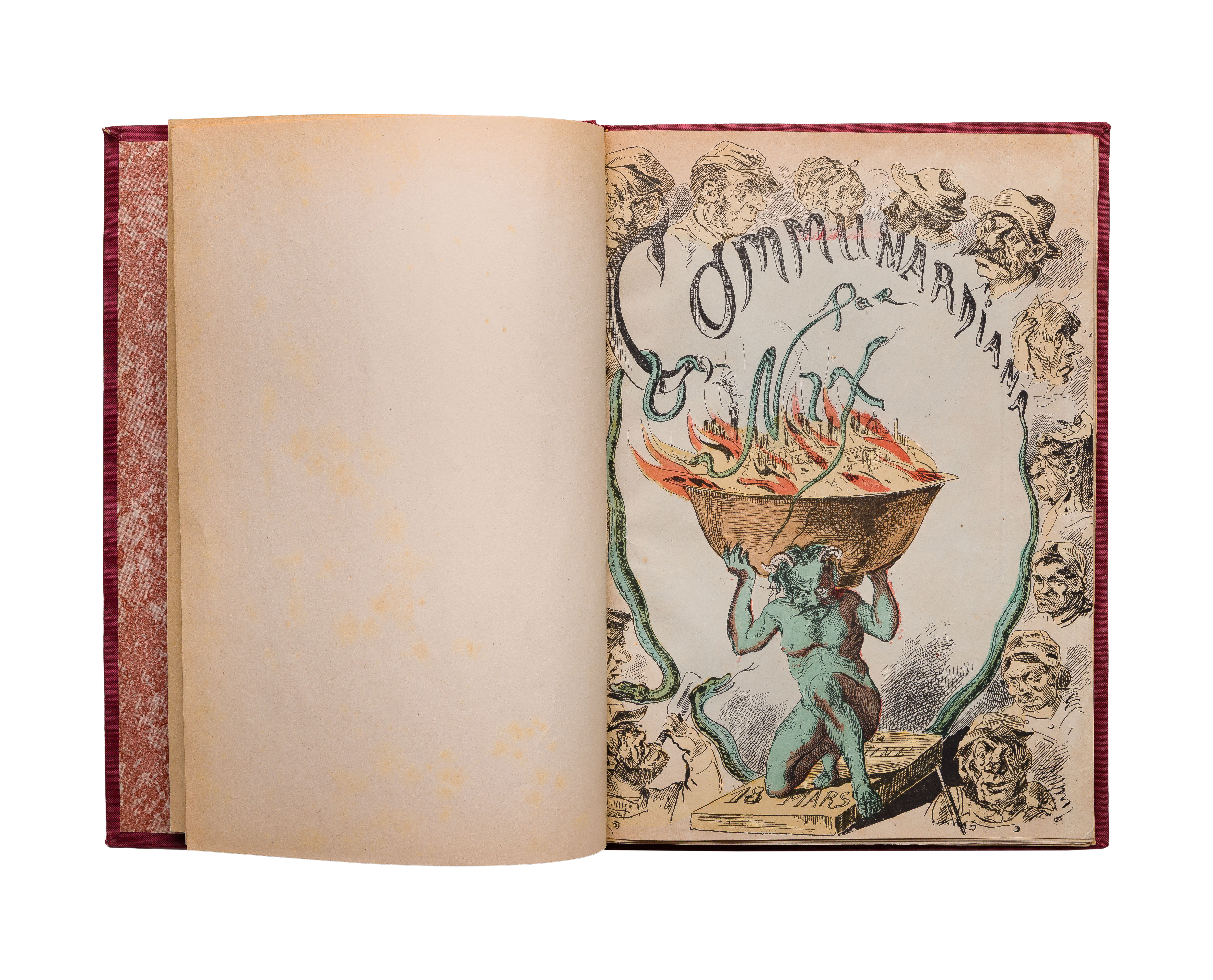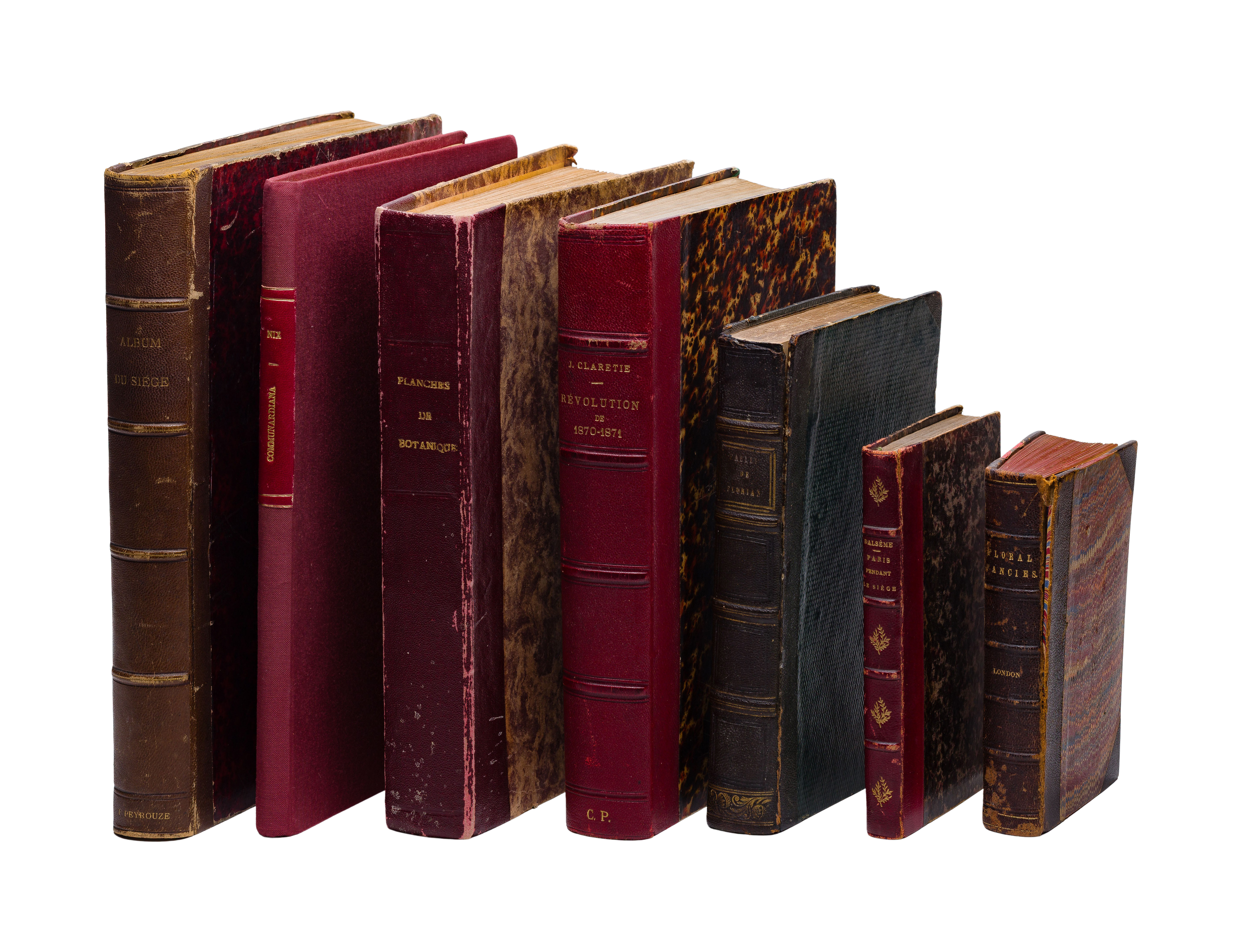 (7) items including 'Communardiana' title of a series of political cartoons created during the Paris Commune, 'Planches de Botanique' a series of plant etchings, 'Album du Siege', most having leather bindings