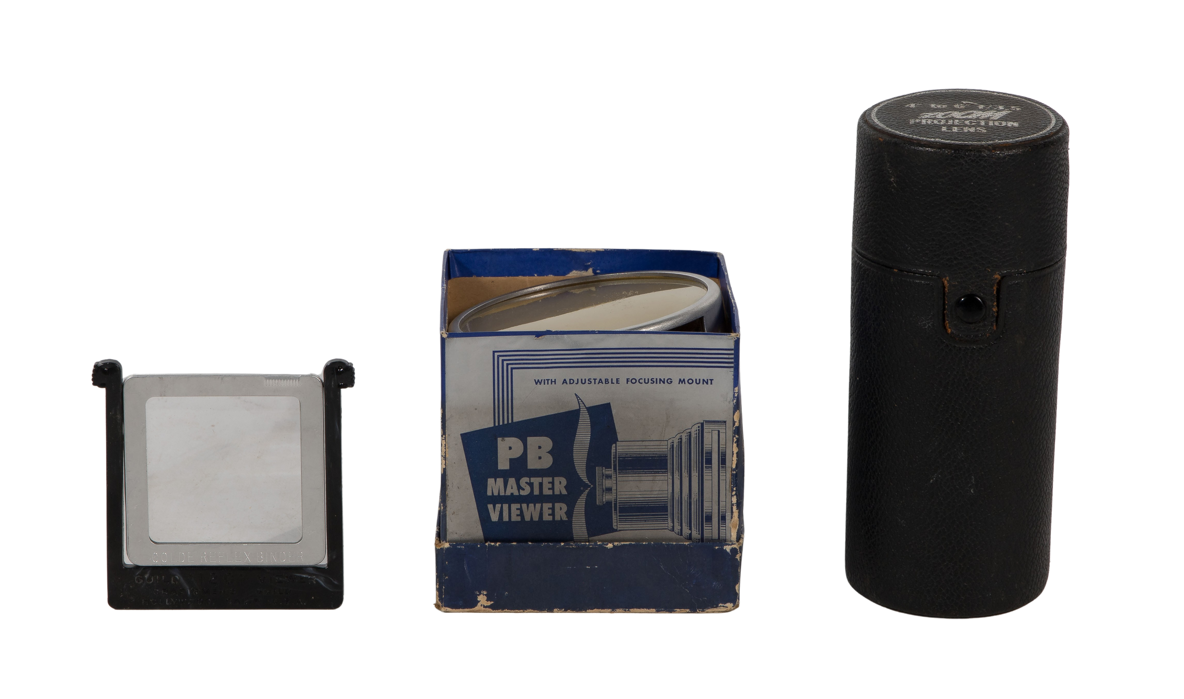 Condition: overall light to moderate wear consistent with normal use, camera missing battery cap, surface wear, not tested, View Master box having wear, zoom projector lens having dust and wear
