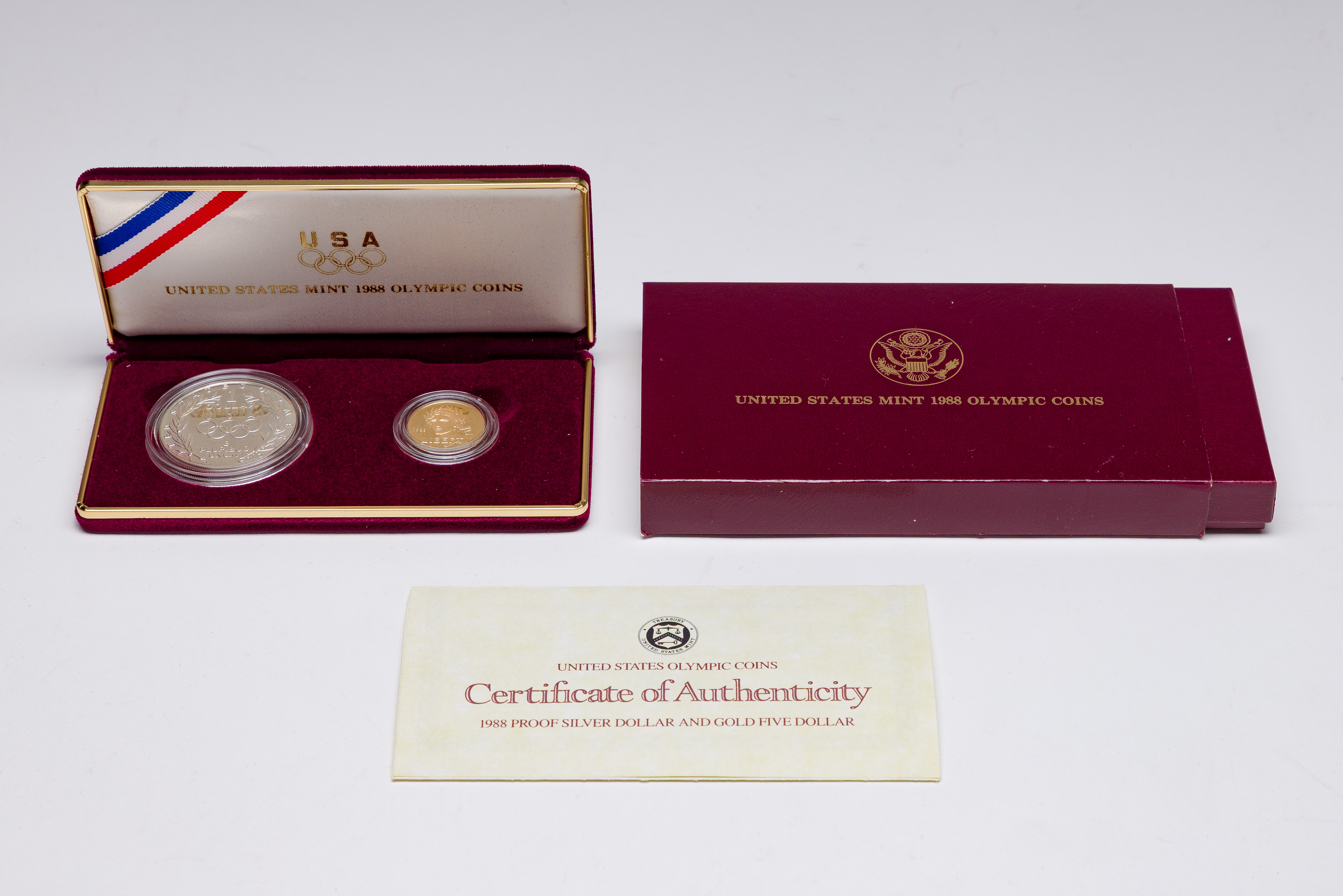 (2) coins including box and certificate
