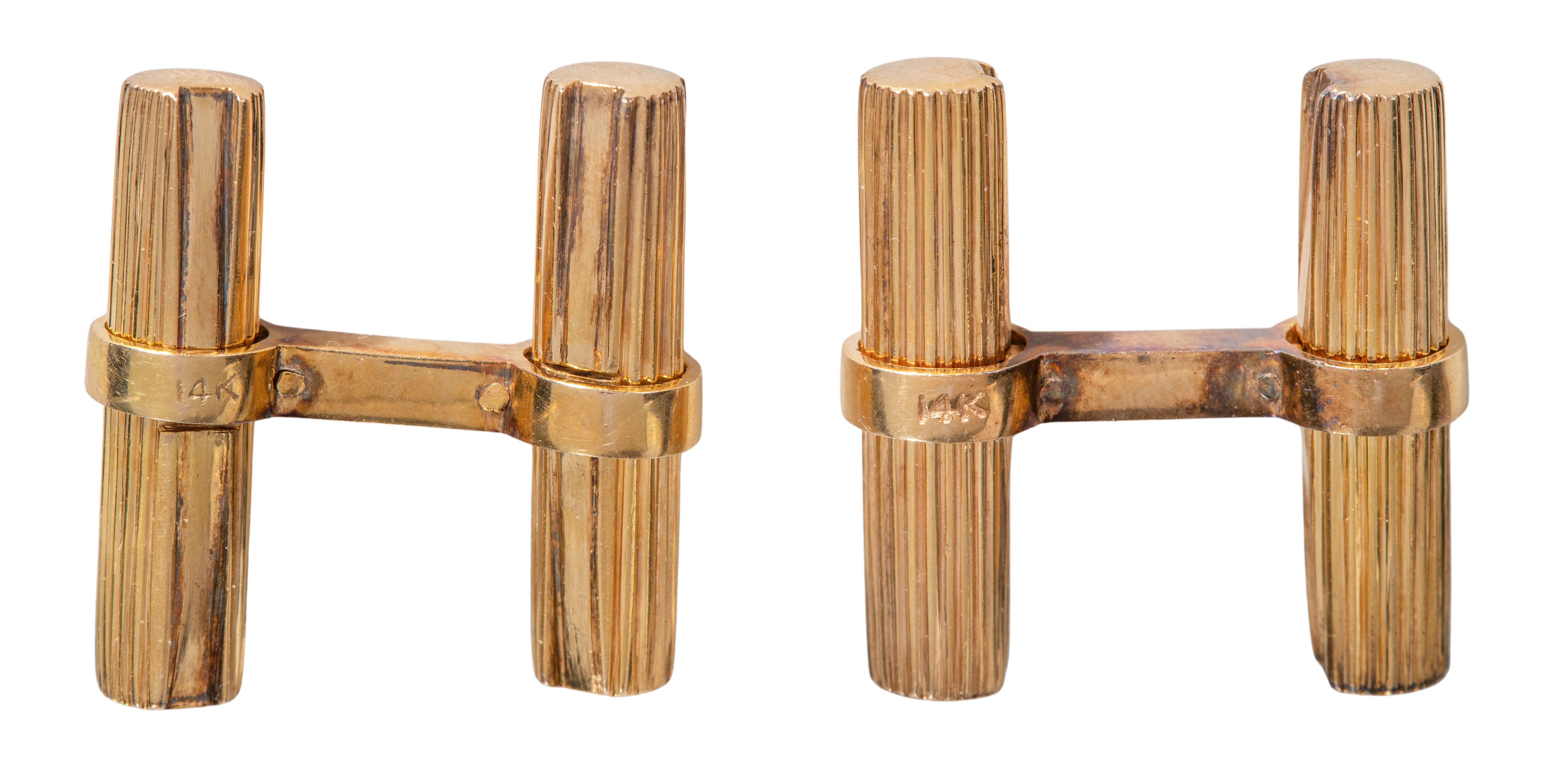 A pair of ribbed baton style cufflinks (erroneously marked '14k')