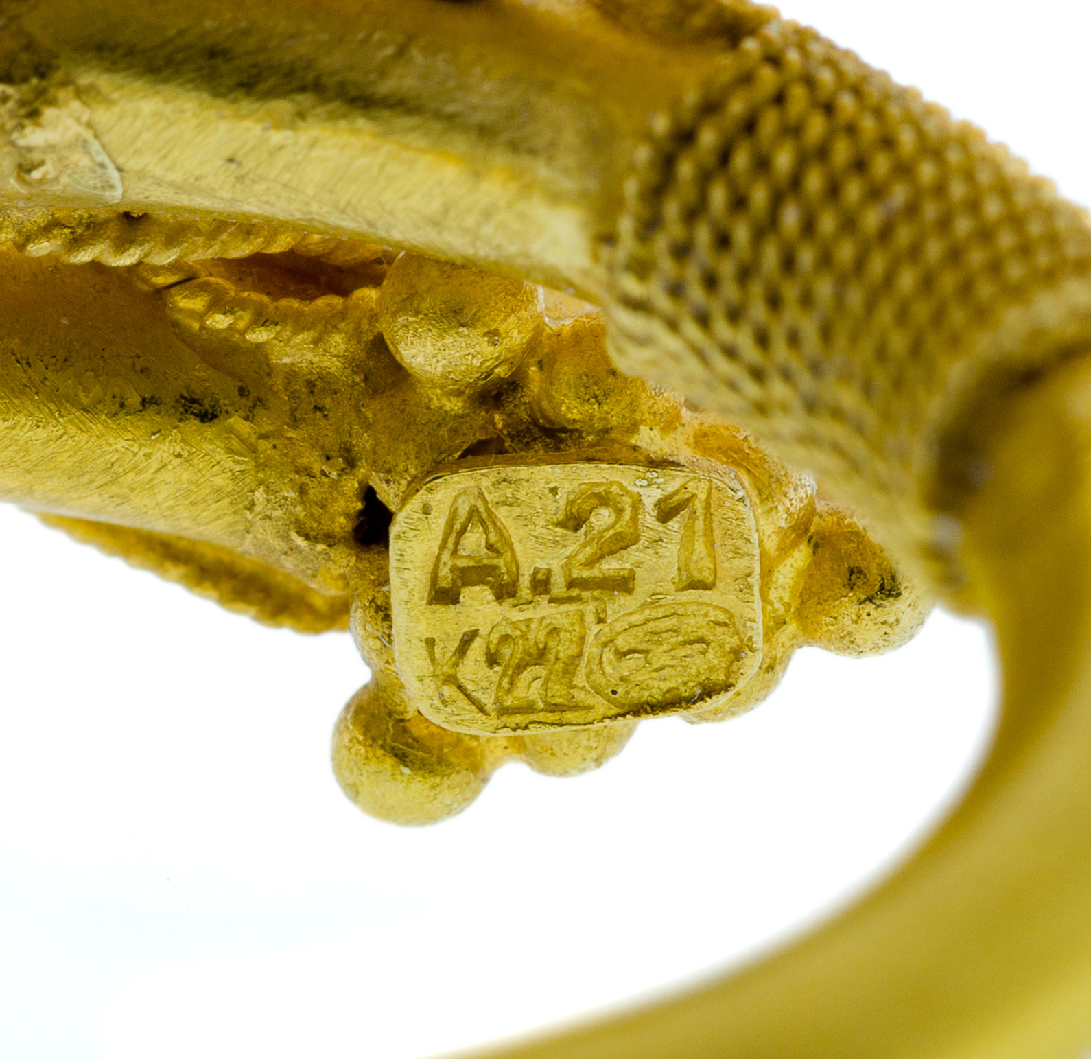 Byzantine style coil having bezel set rubies (unmarked 20k)