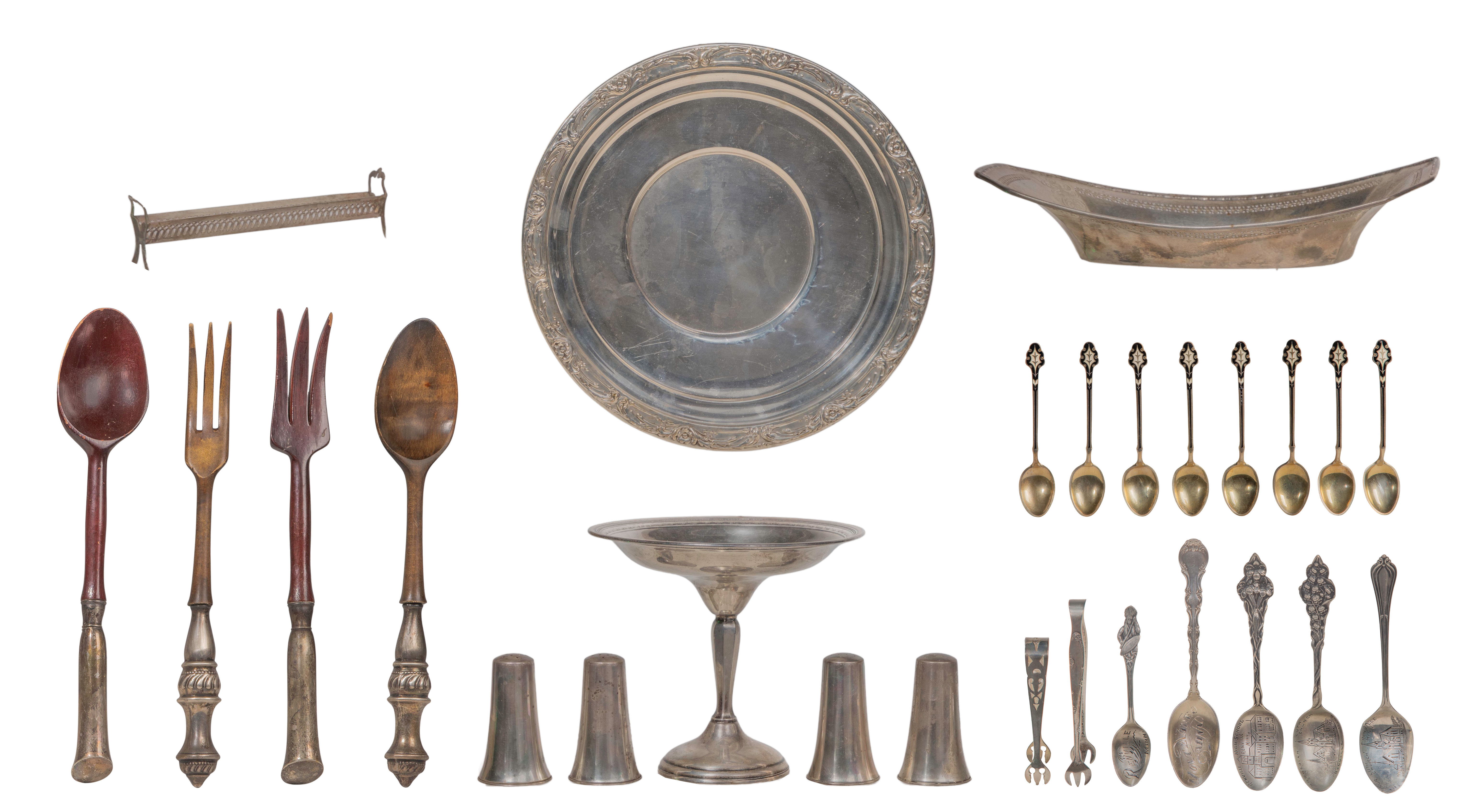 (27) items of various shapes, sizes and uses such as spoons, souvenir spoons, salt and pepper shakers, serving trays, compotes (all marked 'sterling' / '925')
