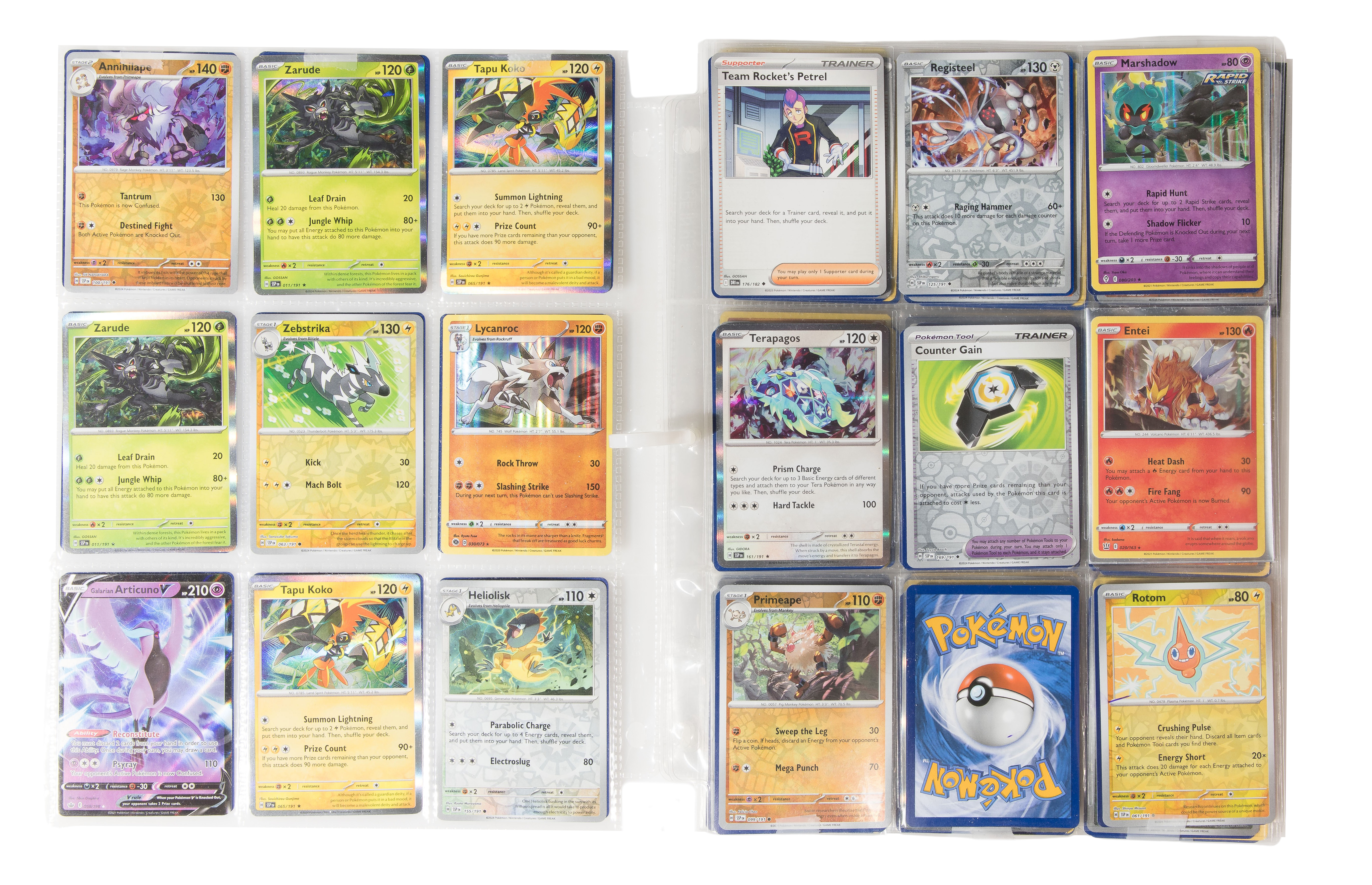 Approximately (360) items, graded 9 Mint CGC sealed having holograms including a gold metal Charizard and a gold metal Pikachu, both having a CGC hologram, as well as a mix of loose cards, flat sheets and a decorative collector’s box