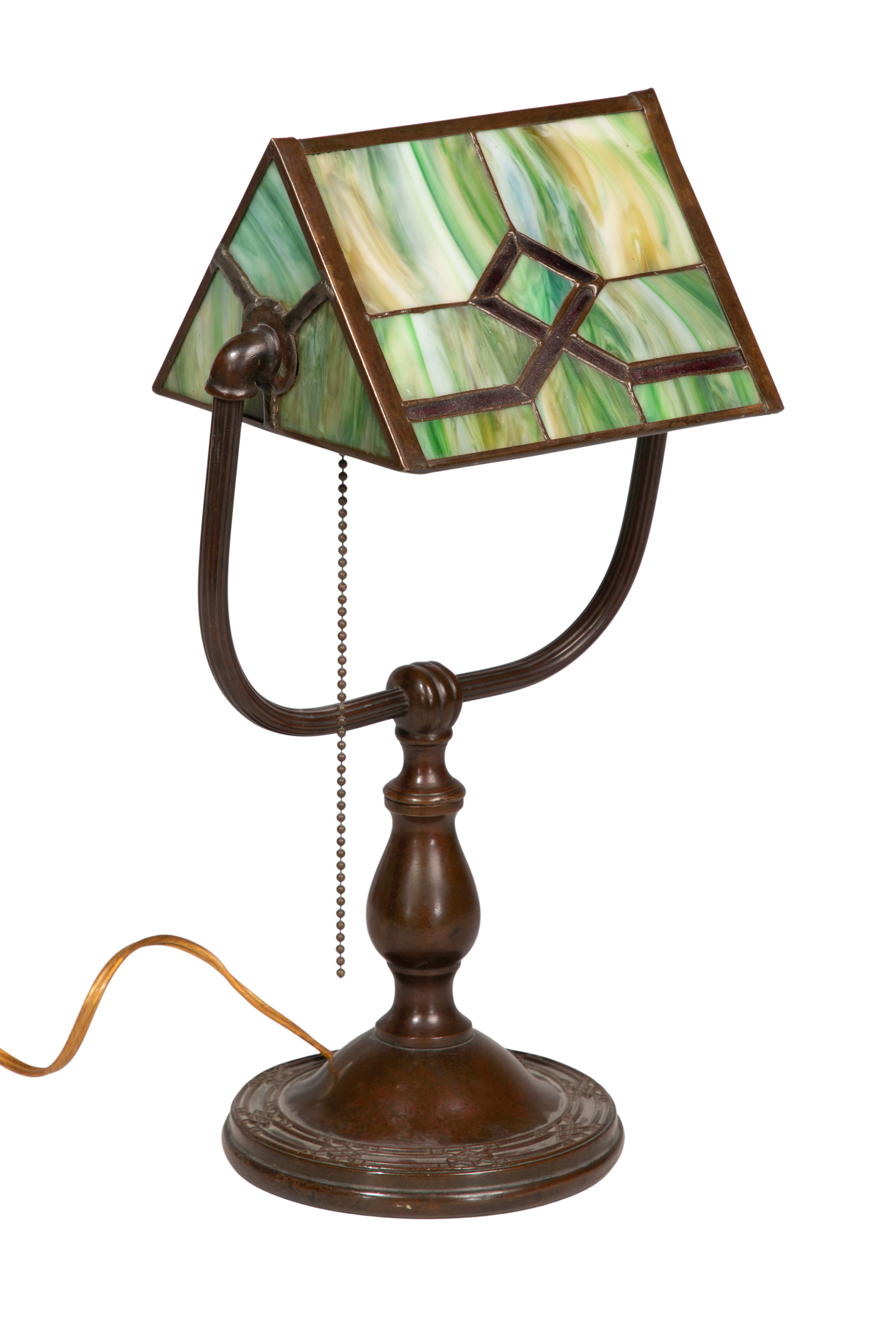 Having an adjustable replacement acrylic shade on a copper-tone metal base, marked 'Handel' underside