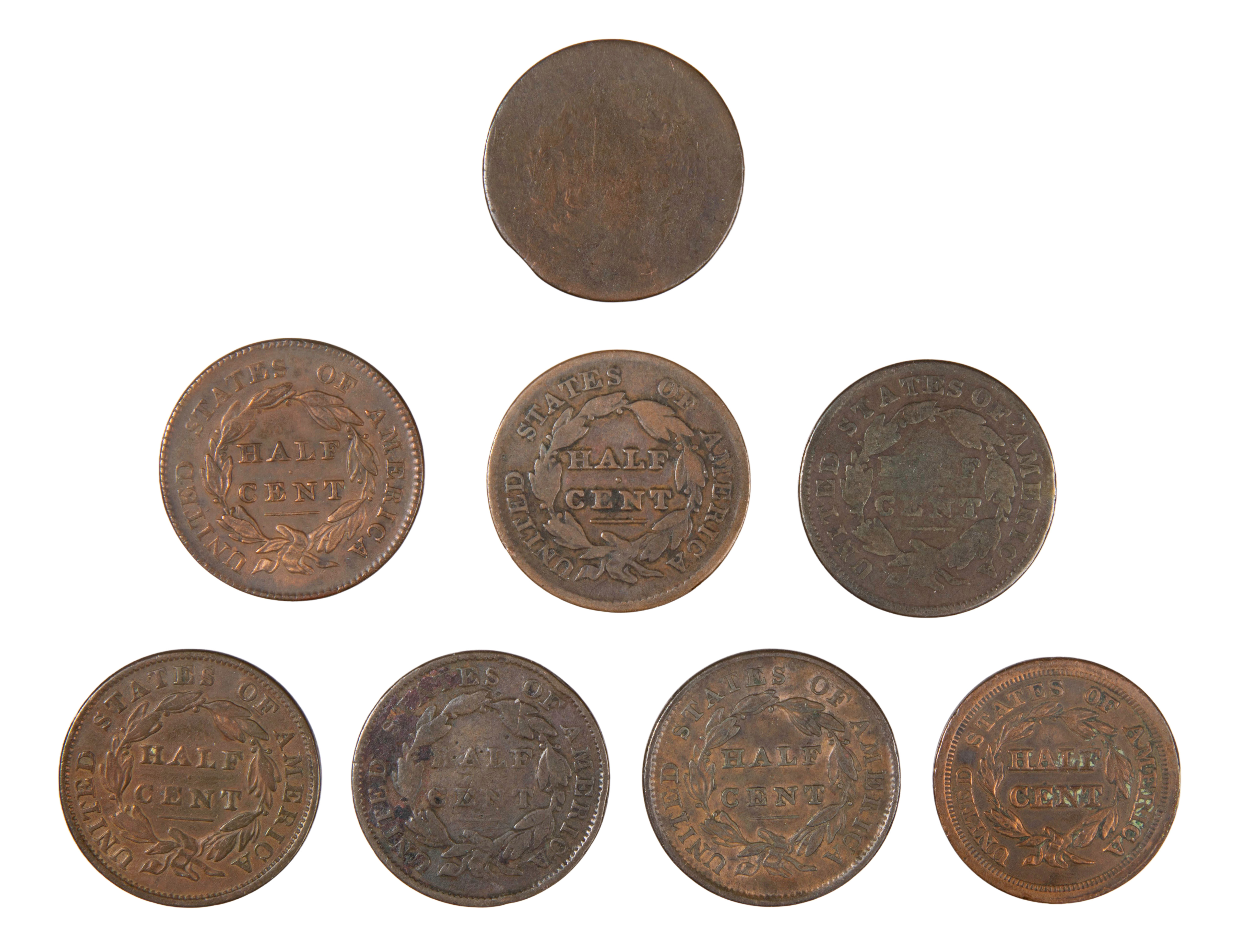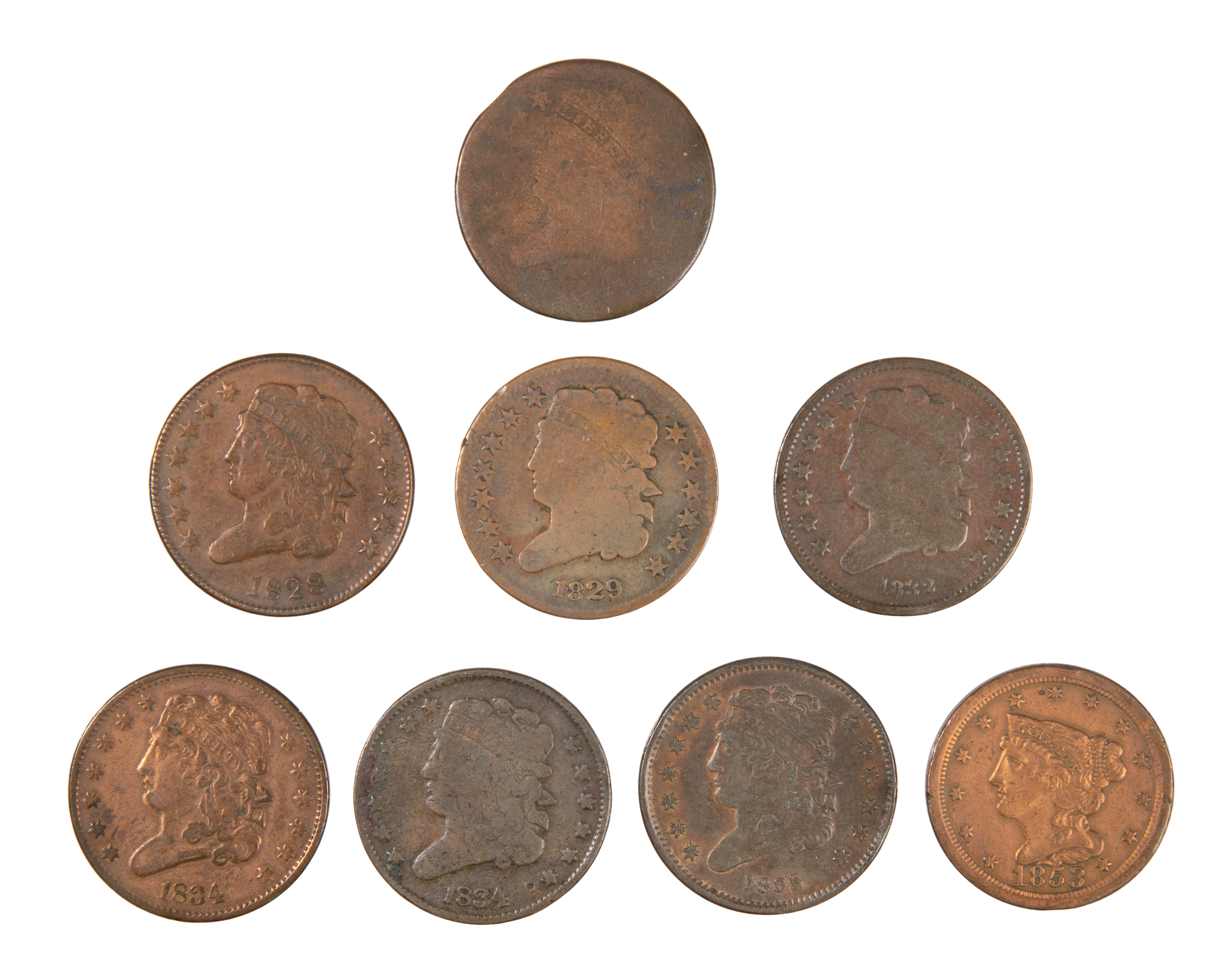 (8) coins including an 1810, 1828, 1829, 1832, (2) 1834, 1835 and 1853