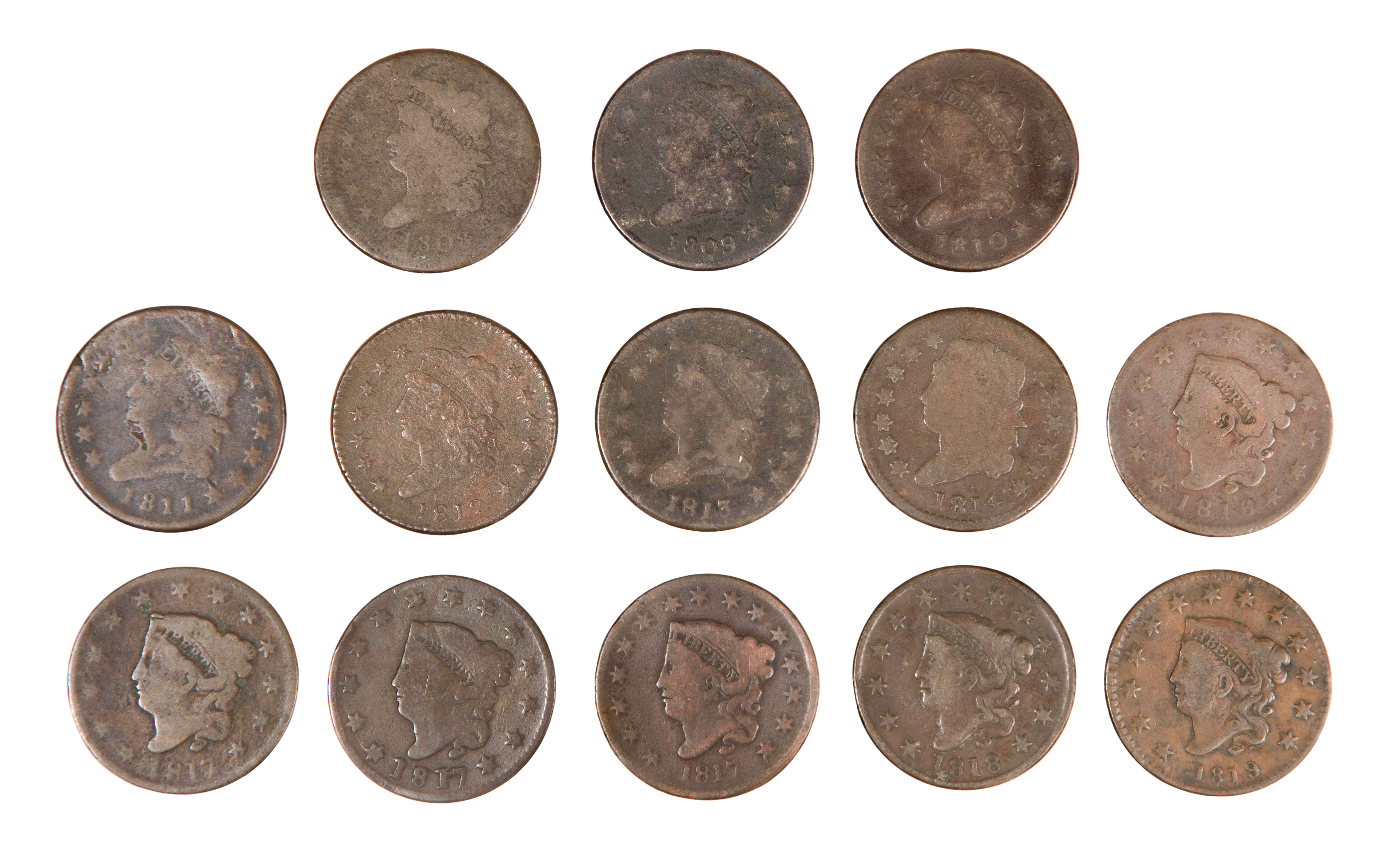 (13) coins including 1808, 1809, 1810, 1811, 1812, 1813, 1814, 1816, (3) 1817, 1818 and 1819