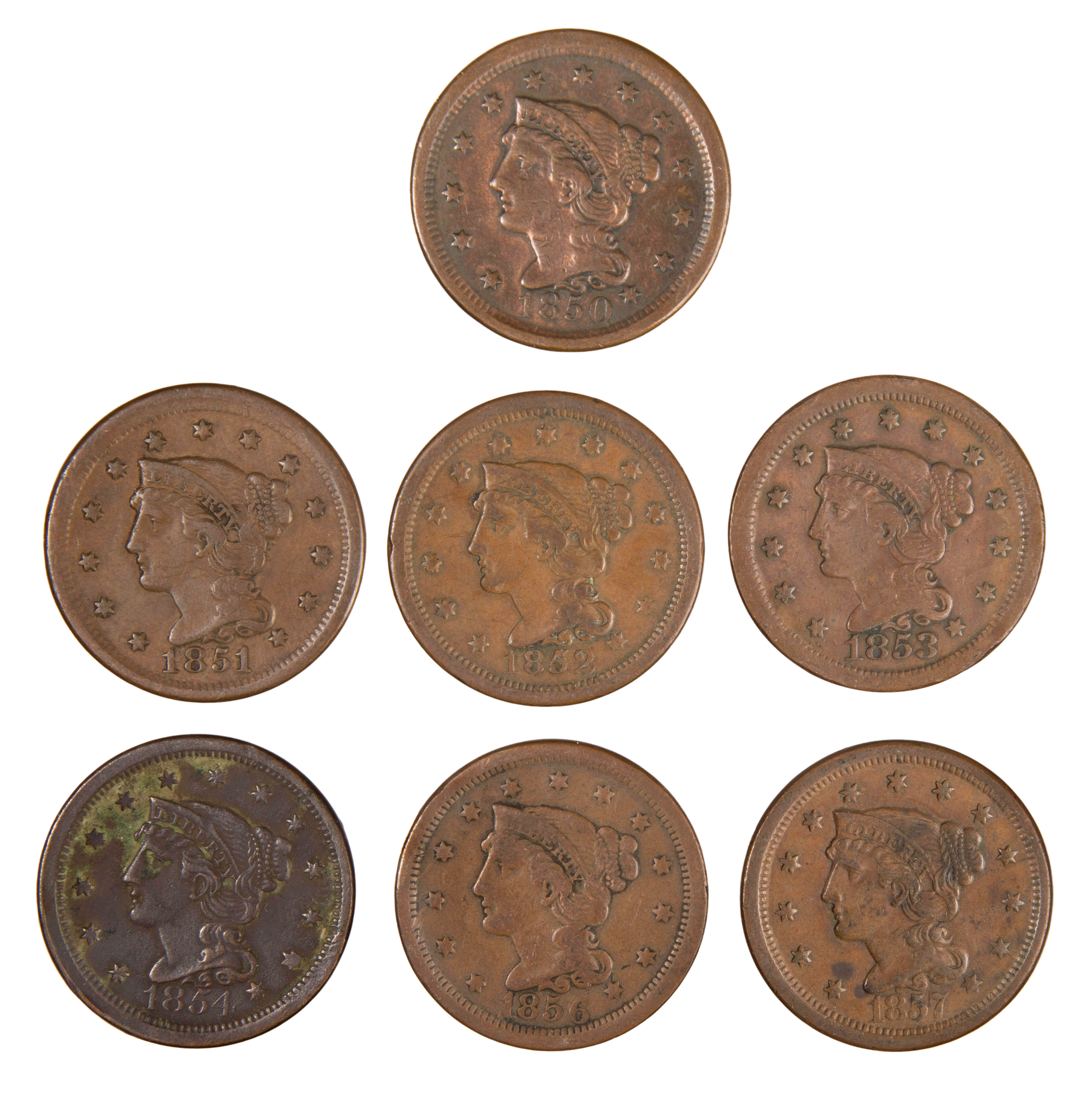 (7) coins including 1850, 1851, 1852, 1853, 1854, 1856 and 1857