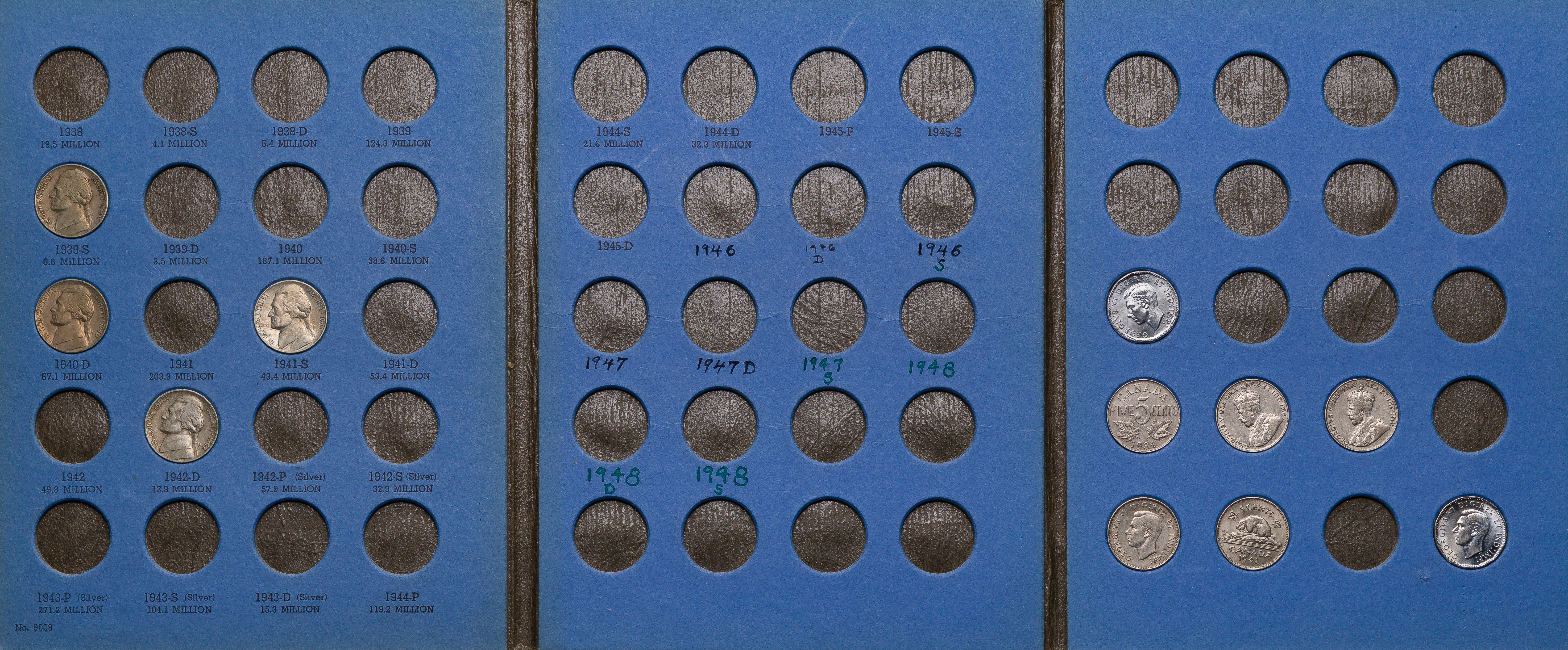 $12.95 face value US 90% silver including (2) Morgan $1, (4) Columbian Exposition 50c, (3) Barber 50c, (2) 1925 Stone Mountain 50c, (2) Walking Liberty, (5) Franklin 50c, (2) Kennedy 50c, (3) Standing Liberty 25c, (3) Barber 10c, (7) Mercury 10c and a Roosevelt 10c, a US 40% silver Kennedy 50c, (11) US 35% silver war nickels, partial coin folders including a Liberty 5c, Jefferson 5c and (2) Wheat 1c, an empty Roosevelt 10c folder as well as an Illinois State Historical Society 0.500 silver medal, a Lincoln Heritage Trail 0.999 silver medal and 1953-B $2 bill