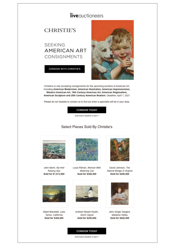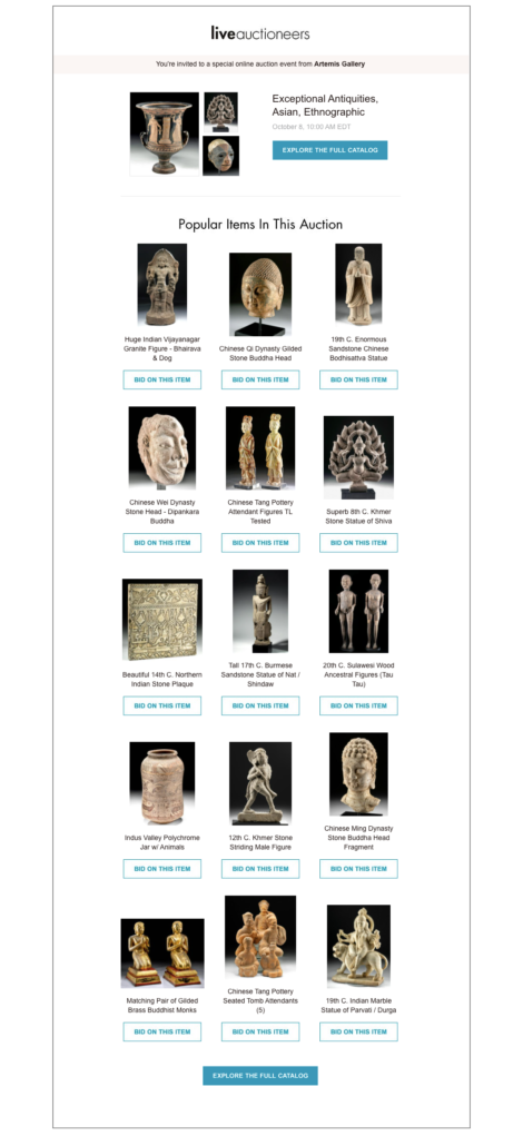 - Distributed to buyers actively saving and tracking upcoming auction items