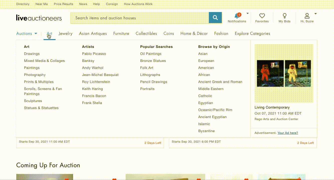 - Prominent placement in LiveAuctioneers’ iOS and Android apps