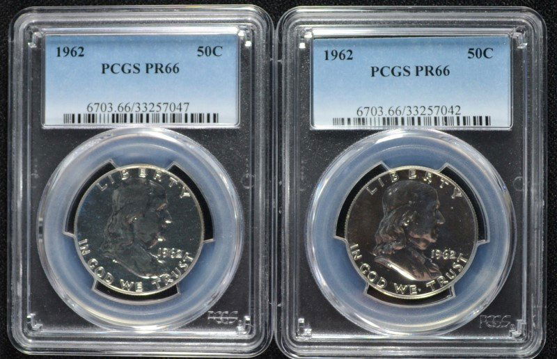 Sold( 2 ) 1962 FRANKLIN HALF DOLLARS, PCGS PROOF-65ESTIMATE.$60.00 TO $75.0O SILVERTOWNE AUCTIONS IS RANKED ONE OF THE BEST INTERNET AUCTIONSSee Sold Price