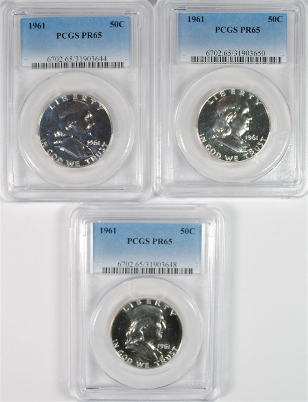 ( 3 ) 1961 FRANKLIN HALF DOLLARS, PCGS PR-65