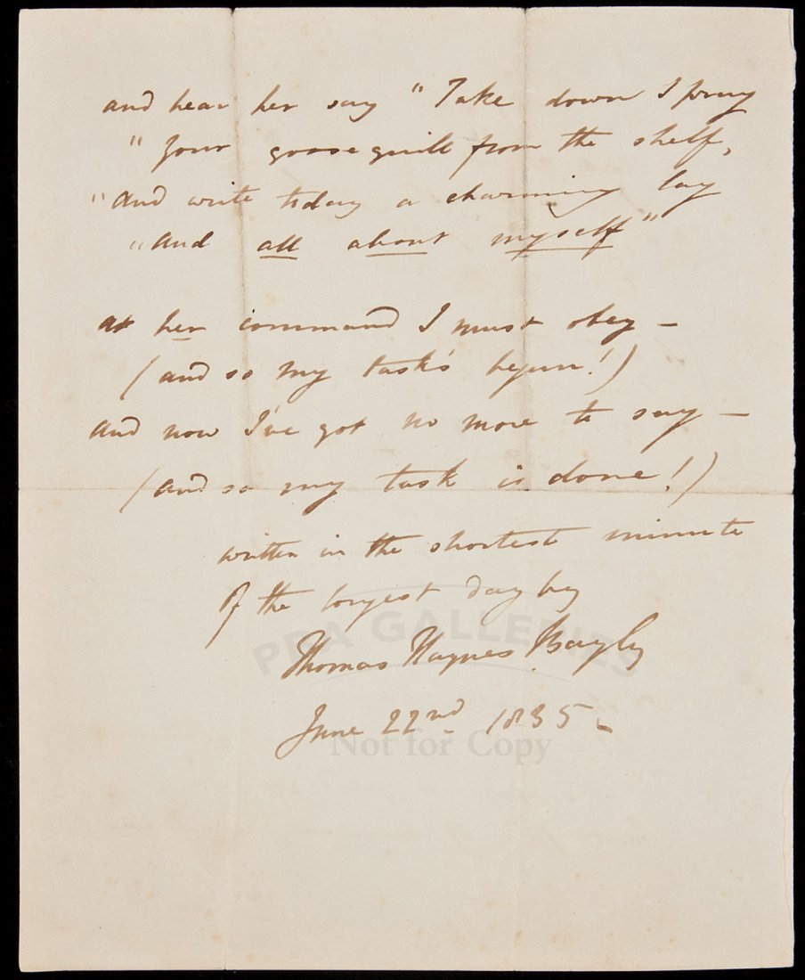 "A Ditty" - Autograph poem, signed Thos Bayly