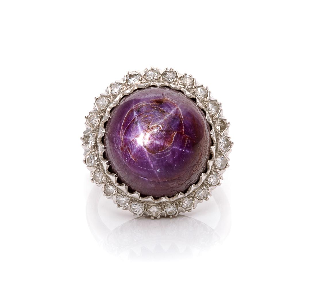 SoldPlatinum 900 - 2.01tcw - Star Ruby & Diamond RingNo Reserve Price! Grading Results:___________Stone Type: Natural Star RubyShape: Oval CabochonCarat: 1.51 ctColor: Purplish RedClarity: NONE Grading Results:__________See Sold Price