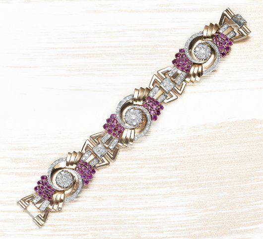 , A Retro Ruby Diamond and Gold Bracelet, 1945