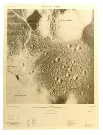 SoldApollo 17 Flown Photography Map, Ex: Gene CernanApollo 17n.p., n.d.Apollo 17 Flown Photography Map, Ex: Gene CernanMapAn incredible rarity: a map from the "Lunar Orbit Chart A" carried into lunar orbit aboard the Command Module "AmerSee Sold Price