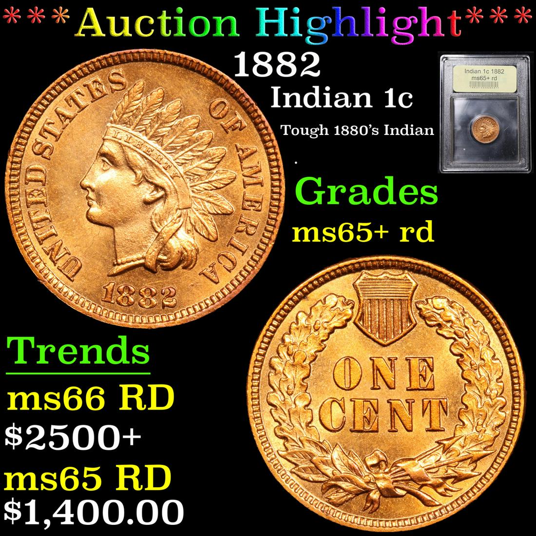 ***Auction Highlight*** 1882 Indian Cent 1c Graded Gem+