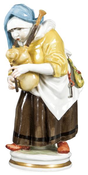 "Bagpiper" Enameled porcelain figure from Algora.