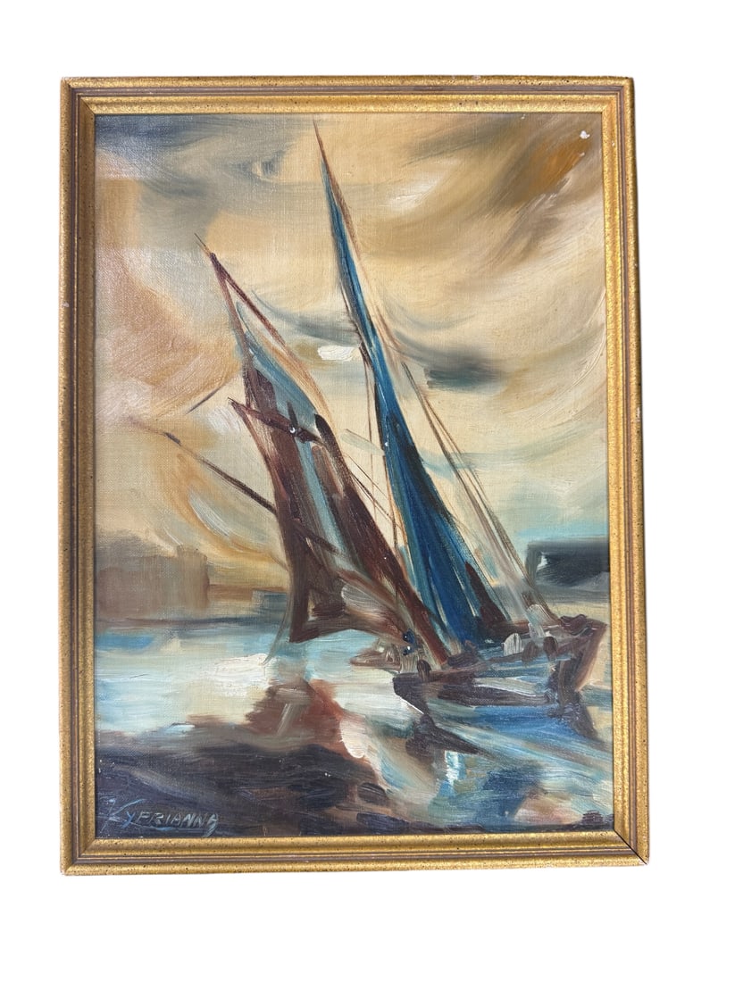 "Boats" Signed Framed On Canvas