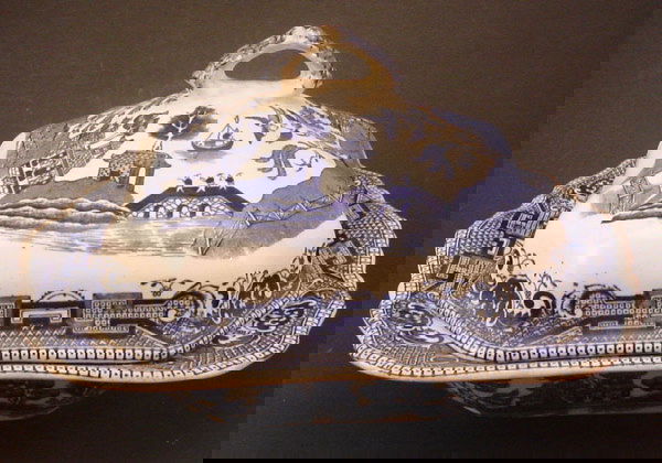 "Buffalo Pottery" Blue Willow Pattern. Covered tra