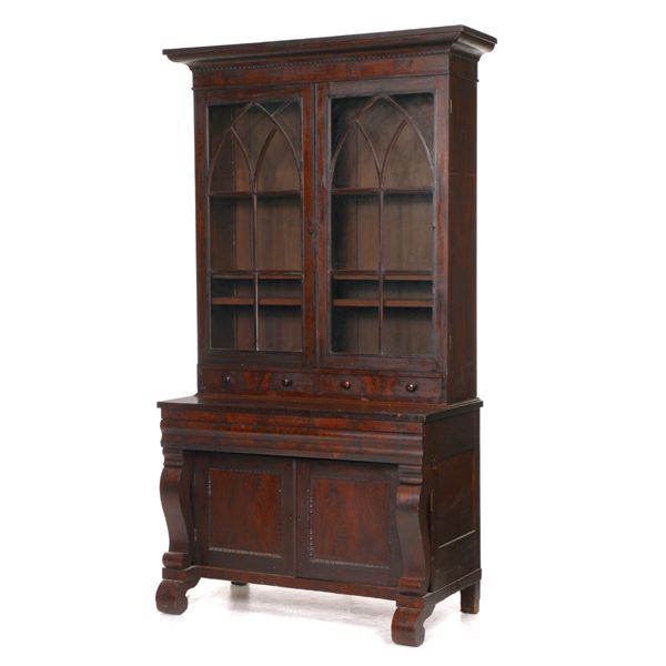 "c. 1830 Empire secretary, flame and solid mahogan
