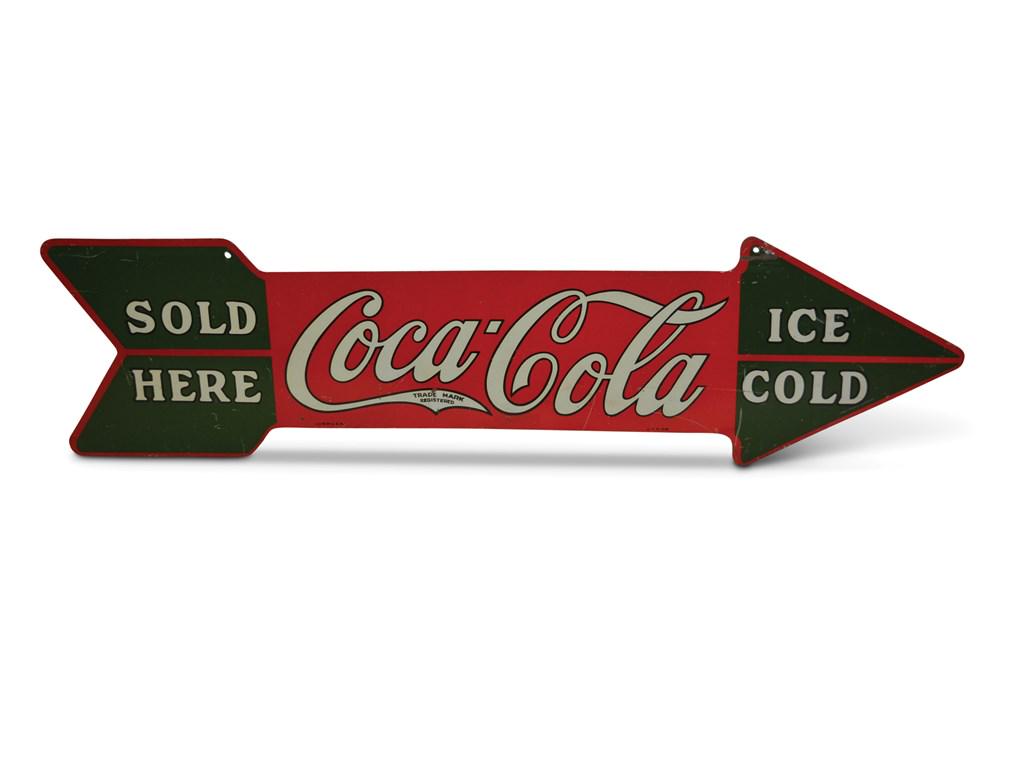 "Coca-Cola Sold Here Ice Cold" Arrow Sign