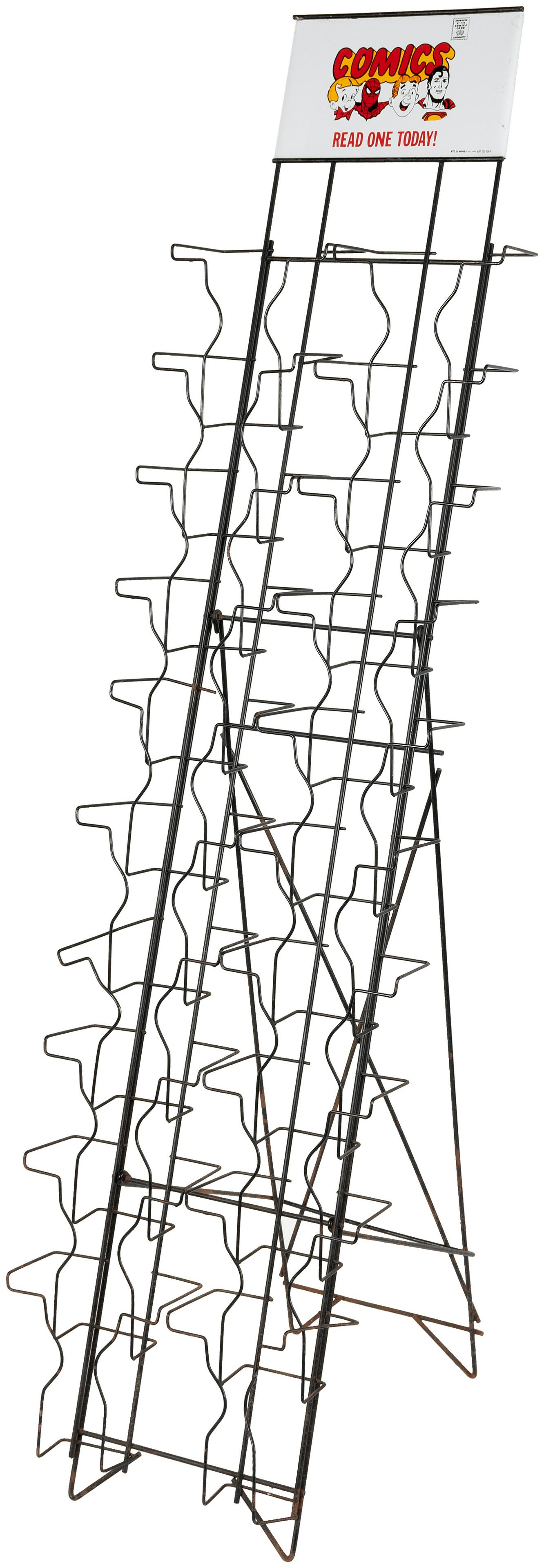 "COMICS - READ ONE TODAY!" WIRE COMIC BOOK SALES RACK.