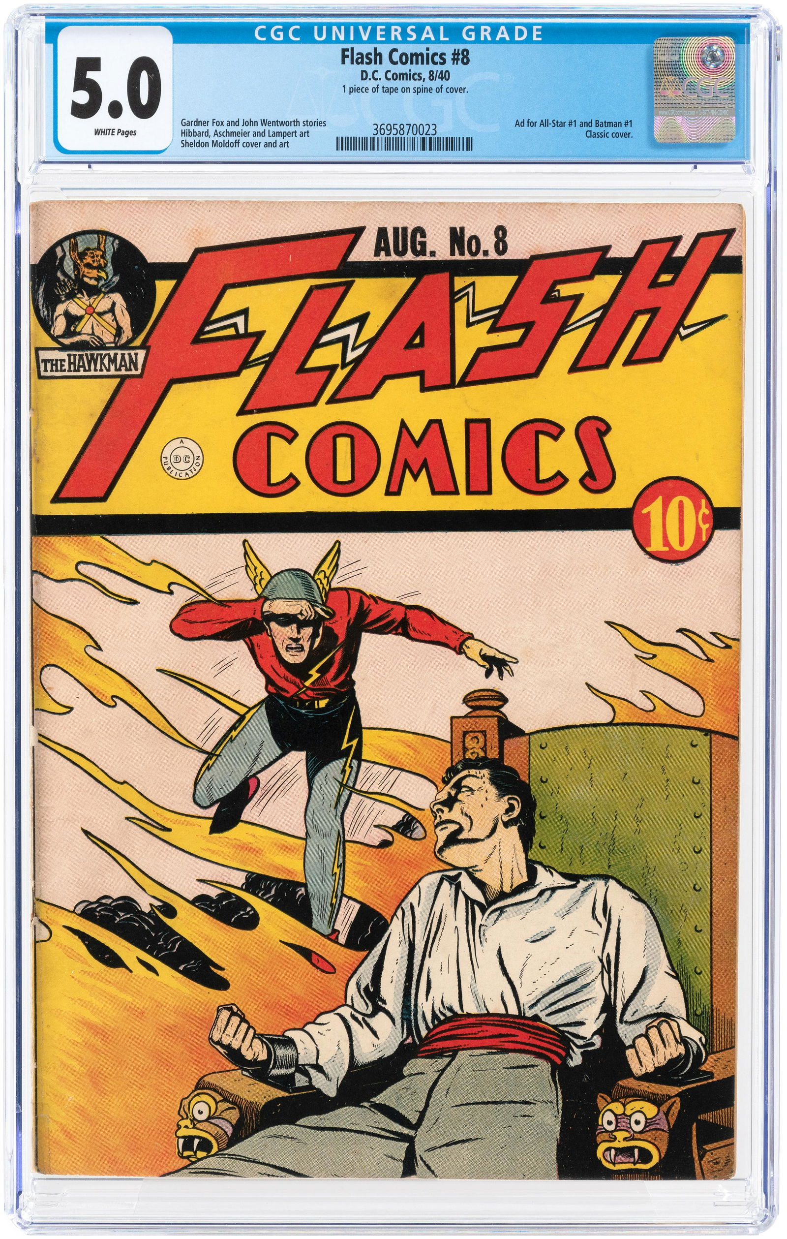 "FLASH COMICS" #8 AUGUST 1940 CGC 5.0 VG/FINE.