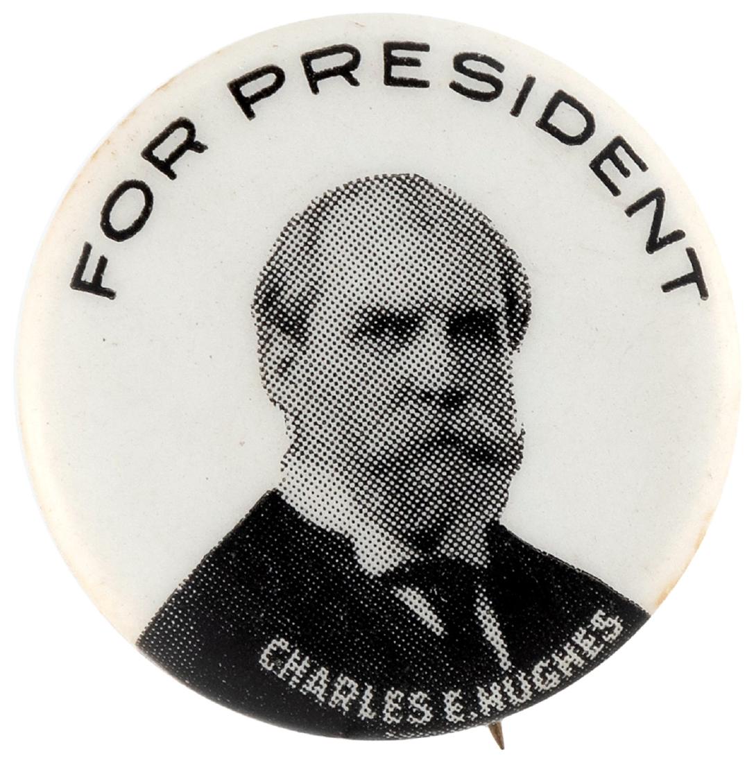"FOR PRESIDENT CHARLES E. HUGHES" PORTRAIT BUTTON.