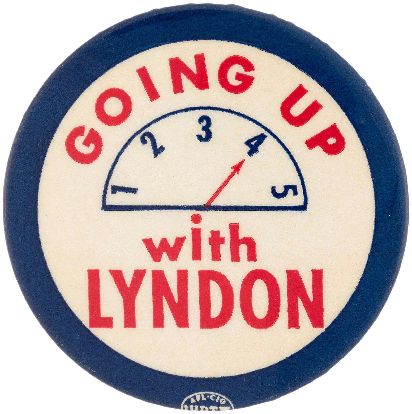 "GOING UP WITH LYNDON" JOHNSON 1964 CAMPAIGN BUTTON