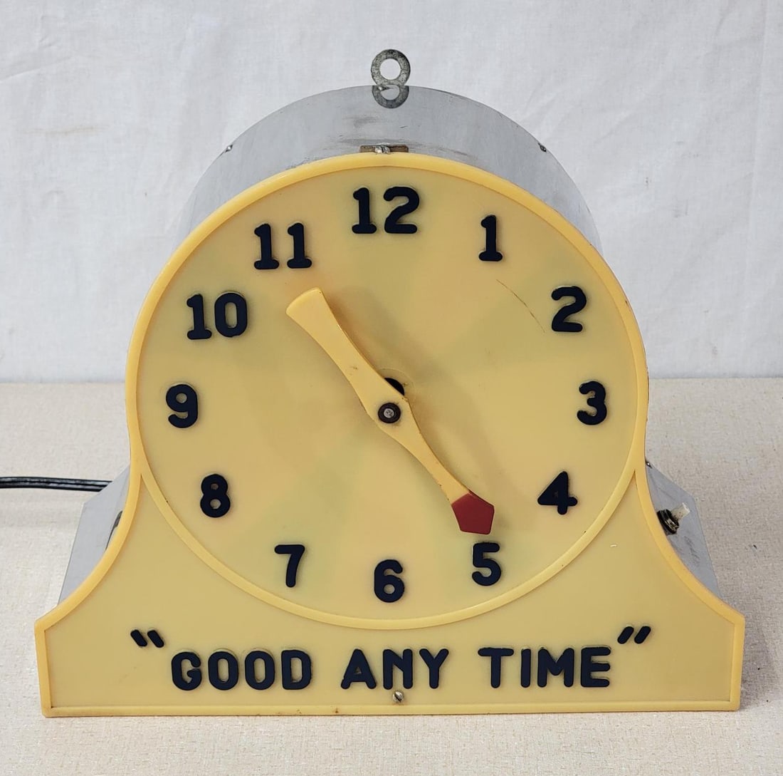 25"dia. metal & plastic lighted clockMar 28, 2026Borden's Milk & Cream lighted bubble clockMar 27, 2026Chevrolet Time neon clock by LacknerMar 28, 2026Large store display metal bottleMar 28, 2026Neon electric clock by Say-It-In NeonMar 28, 2026A&P Coffee electric wall-mount clockMar 28, 2026Marigold Dairy Products Double Bubble Light Up ClockMar 21, 2026Pyrofax Quality Controlled Gas Light Up ClockMar 20, 2026Neon Clock Sales Neon Advertising Wall ClockMar 21, 2026Tastee Freeze Time Light Up ClockMar 20, 2026Vintage New England Clock Co Wall Clock Case & Movement only, missing parts, 22h x 16w x 5d inches7-Up Rectangular Light-Up Wall Mount ClockMar 14, 2026Telechrom model 711 alarm clockMar 08, 2026Vintage Master Crafters Atmos Style Electric Clock, Made in U.S.A.Mar 01, 20267 Up Pam Advertising ClockMar 20, 2026Equity Travel Alarm Clock Wind Up in Folding Case6 days Left
