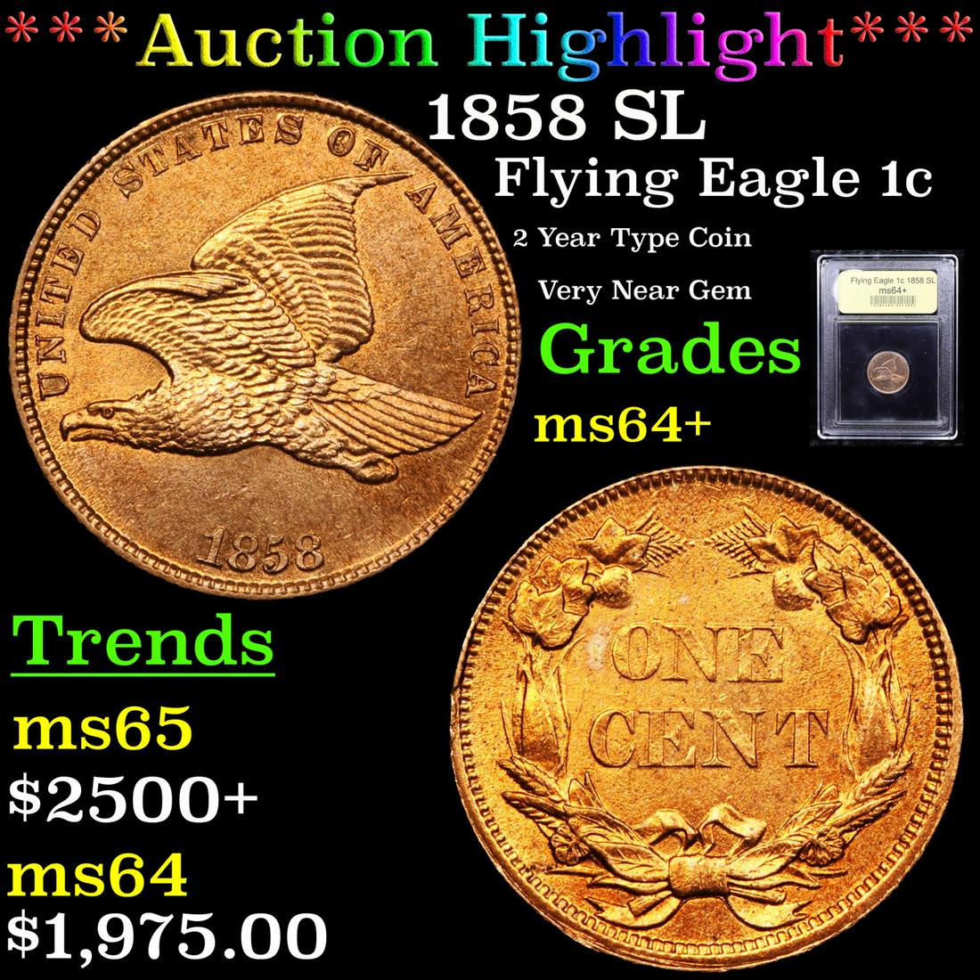 *Highlight* 1858 SL Flying Eagle 1c Graded Choice+ Unc