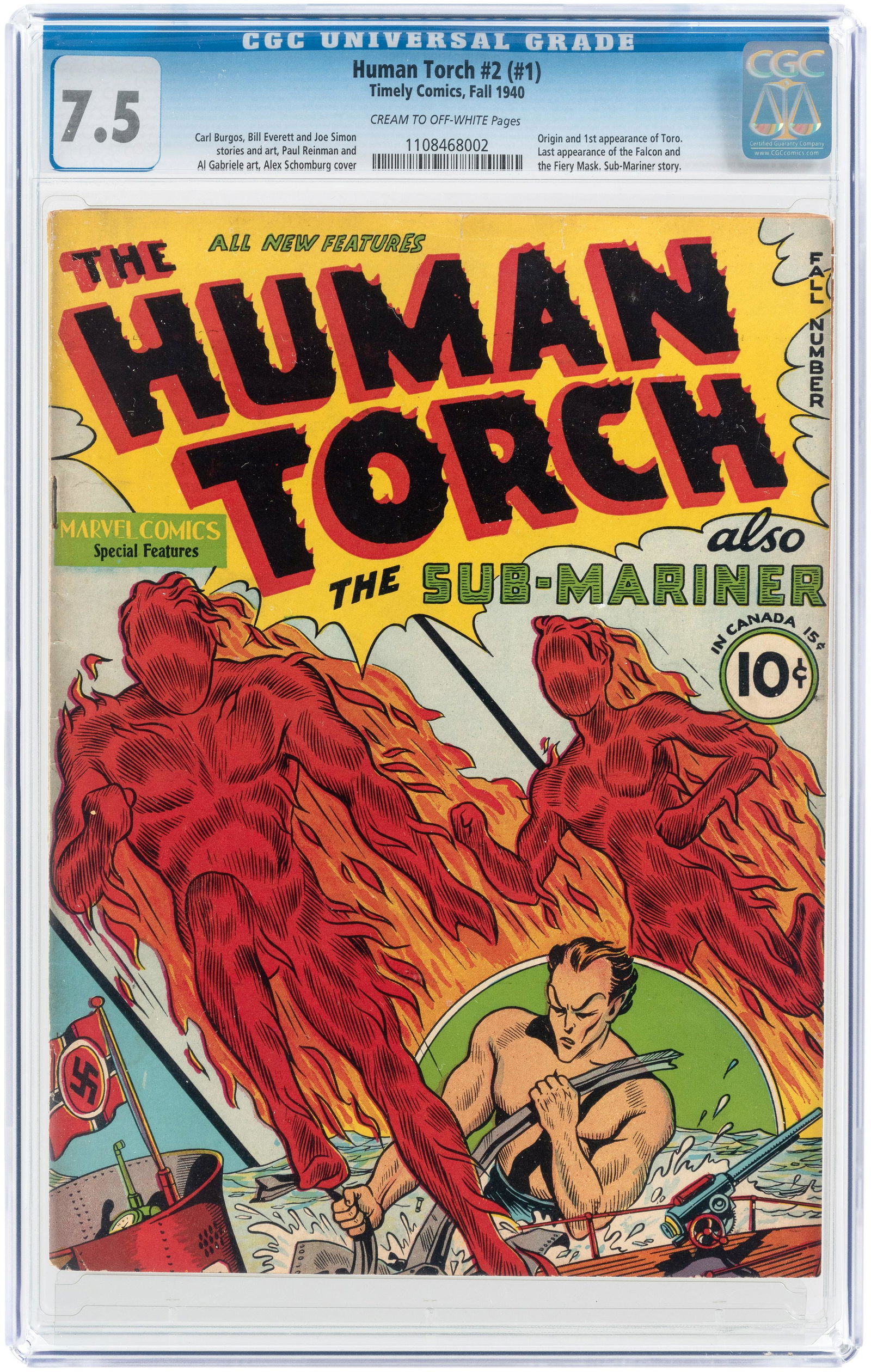 "HUMAN TORCH" #2 (#1) FALL 1940 CGC 7.5 VF- (FIRST