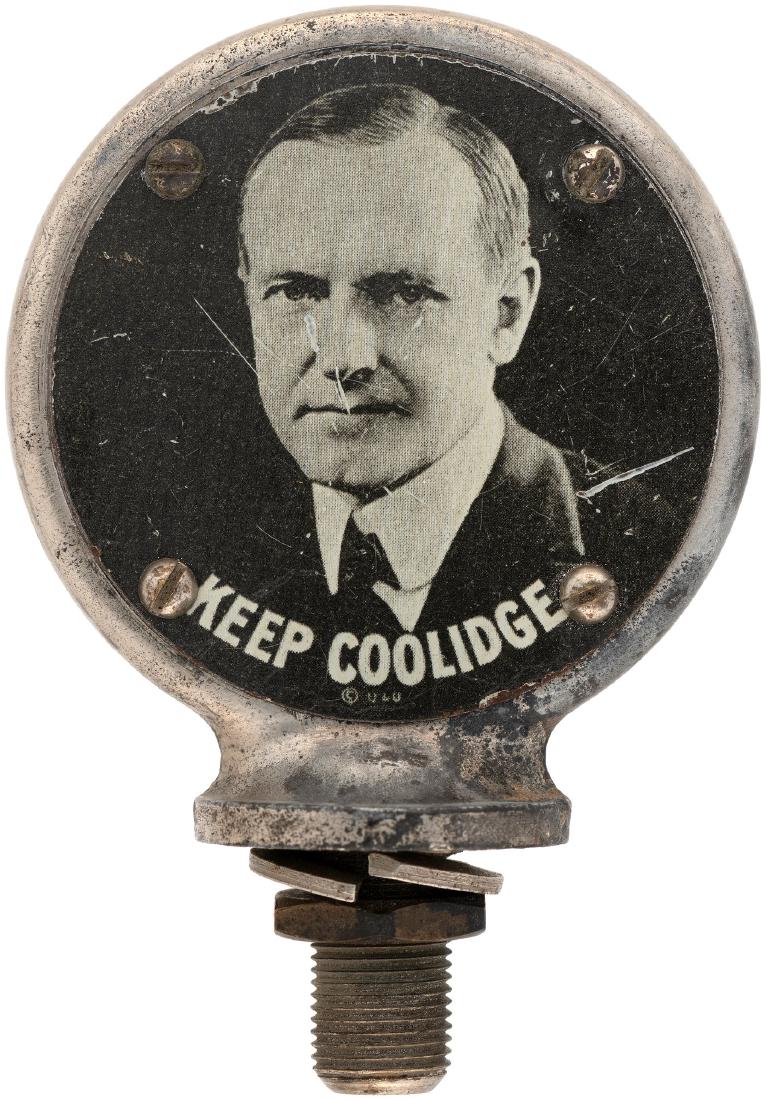 "KEEP COOLIDGE" SCARCE 1924 CAR RADIATOR CAP.
