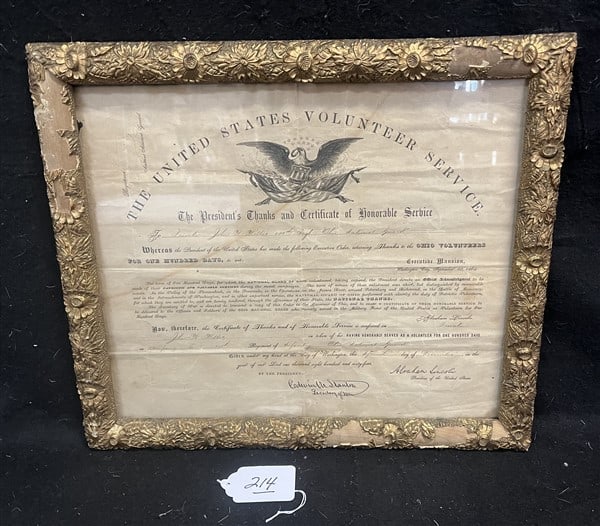 1863 Civil War Discharge DocumentMar 07, 2026CIVIL WAR MASSACHUSETTS 33RD REGIMENT VOLUNTEERS APPOINTMENTMar 06, 2026Martin Van Buren Signed United States Land Grant, Columbus, Mississippi, 1841Mar 07, 2026William L. Richmond 3rd Maine Regt AppointmentsMar 02, 2026State of Illinois John A. Jones, Civil War Service docMar 02, 2026Foster Meekins 5th Sgt. 34th Mass appointmentMar 02, 2026Civil War Ohio Military Commission, 186314 hrs Left2nd Lt. John A. Jones Illinois 64th Regt. appointmentMar 02, 20261865 Civil War Mustered-In DocumentMar 07, 202612th Regt of NH Vols. John R. Davis, AppointmentMar 02, 20262nd Lieutenant Hans Peter Jorgensen AppointmentMar 02, 2026Abraham Lincoln Signed Naval Appointment. One pa4 days LeftJohn Schesler, Webster, MA Civil War DischargeMar 02, 2026Confederate States of America, 300 Dollars Interim Depostory Receipt.Mar 11, 20261856 Michael Clarken Blackstone Citizenship doc.Mar 02, 20261843 Oregon IL Grocery Store Promissory NoteMar 07, 2026